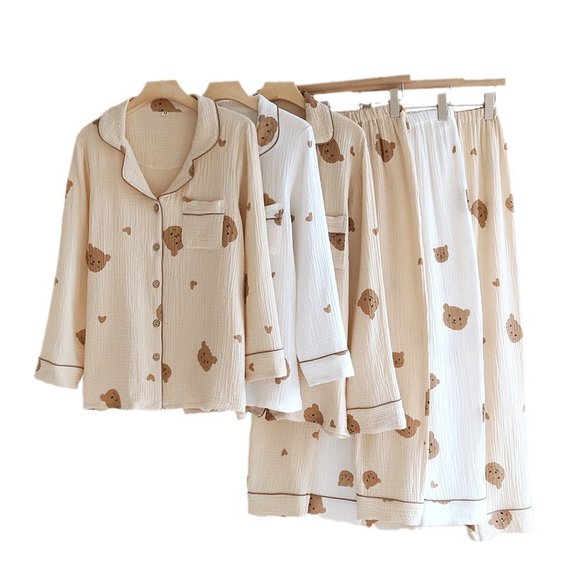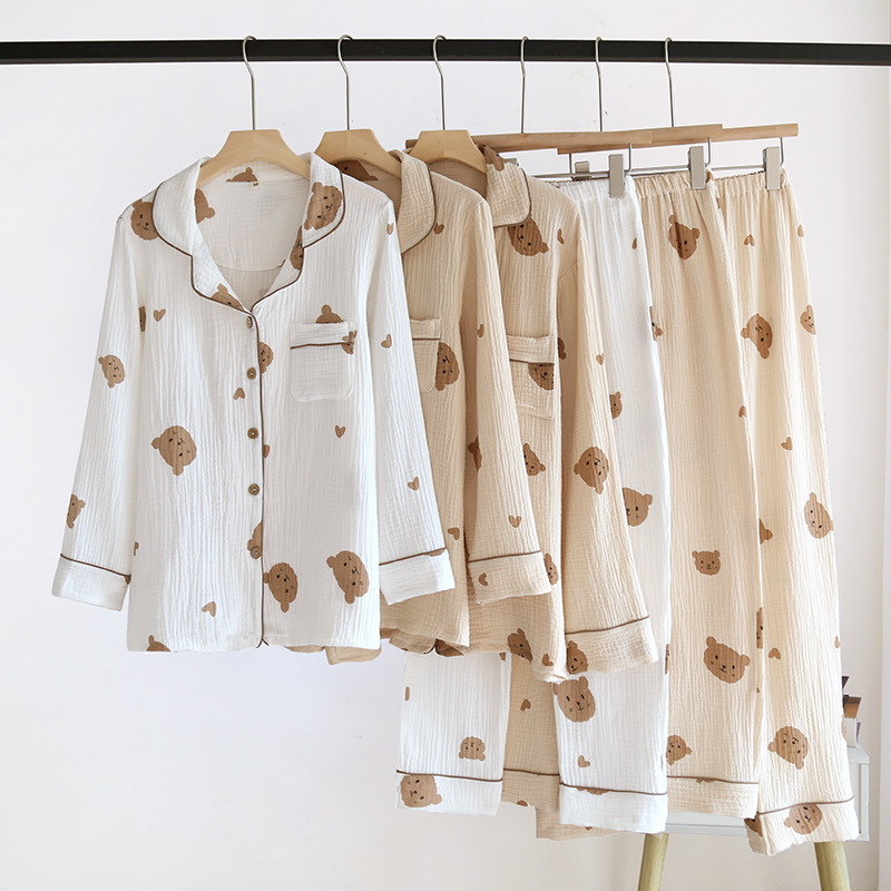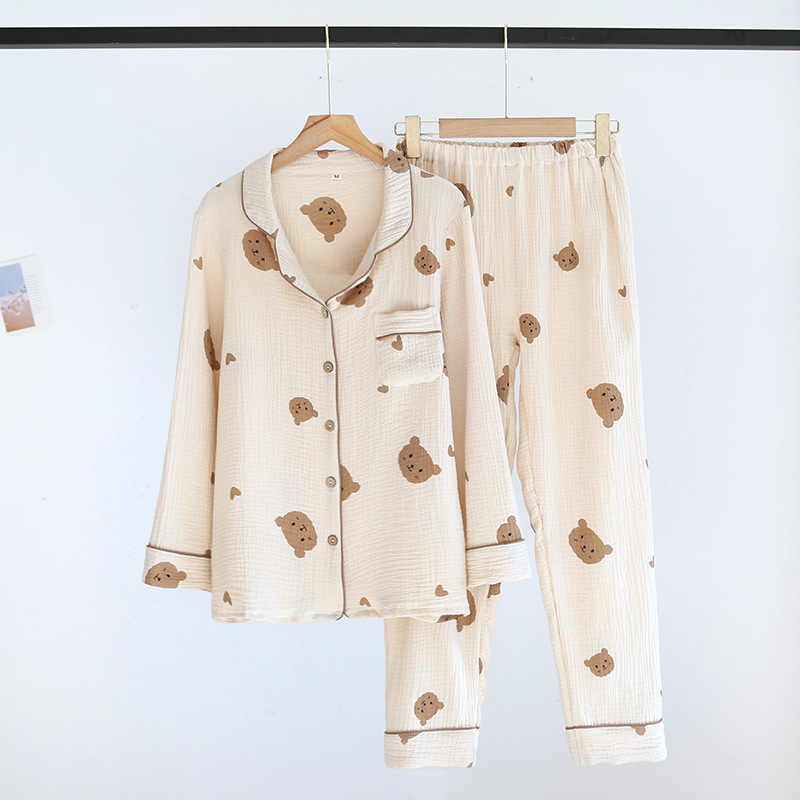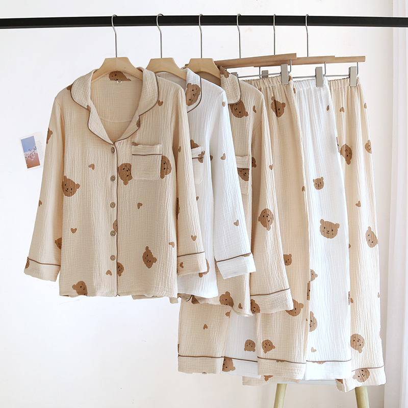 Главная страница > Индивидуальные новые весенне-летние пижамы для пар, двухслойная пряжа, костюм с воротником в виде медвежьего сердца, корейский стиль, комплект домашней одежды из чистого хлопка