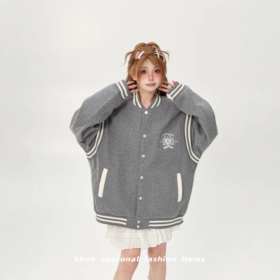 Главная страница > Academy Wind свободно сшитый шерстяной бейсбольный костюм куртка женская весна осень 2025 новый премиум чувство маленькая куртка