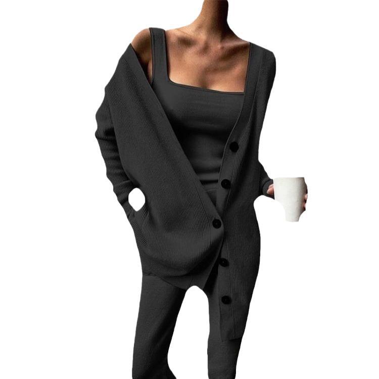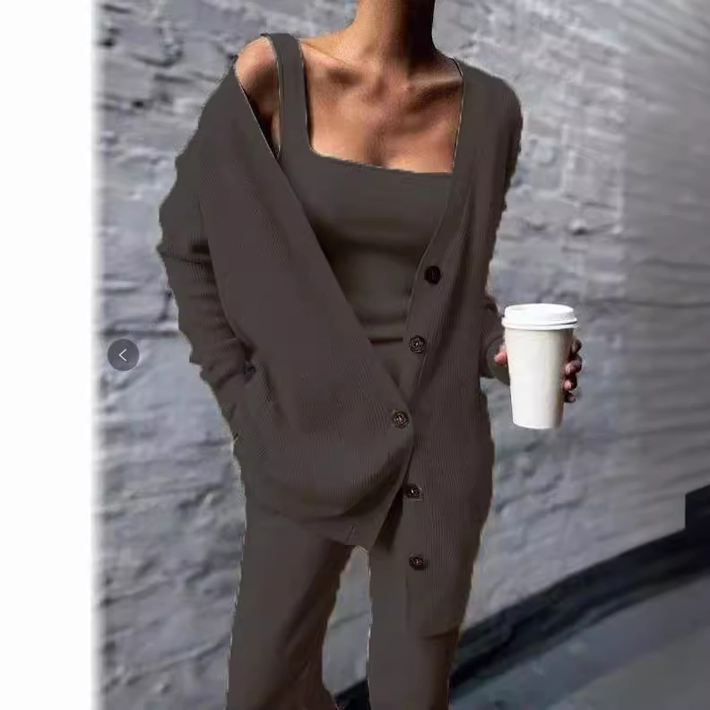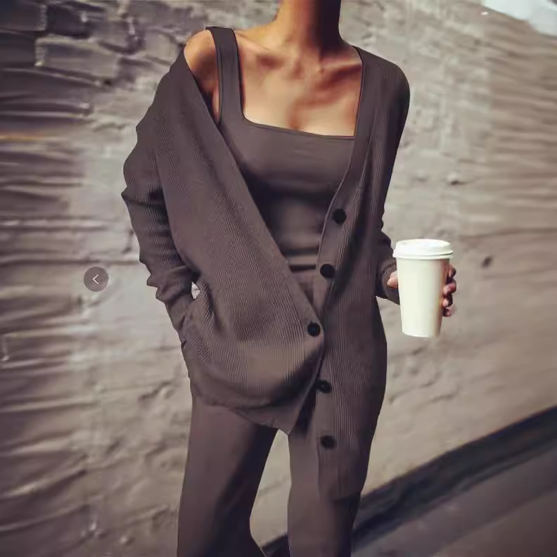 Главная страница > Весенне-осенний трансграничный набор женской одежды Amazon 2025 года: трикотажный комплект из трех предметов: куртка, жилет и брюки для женщин.