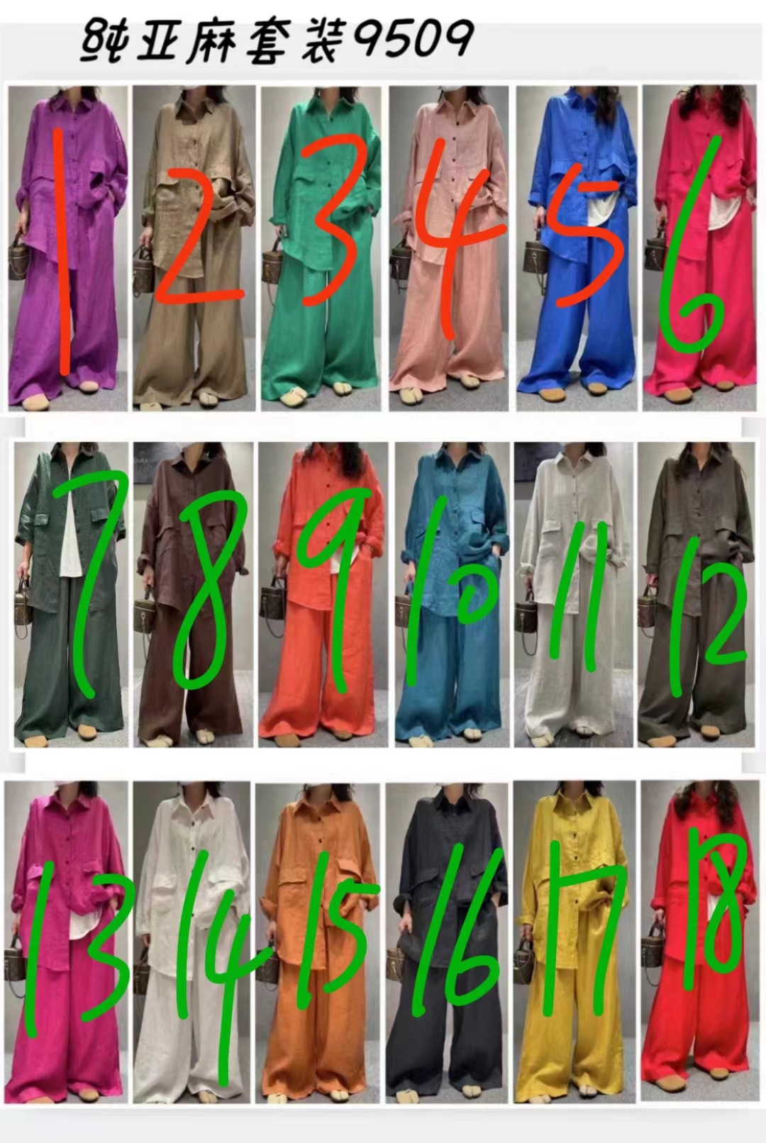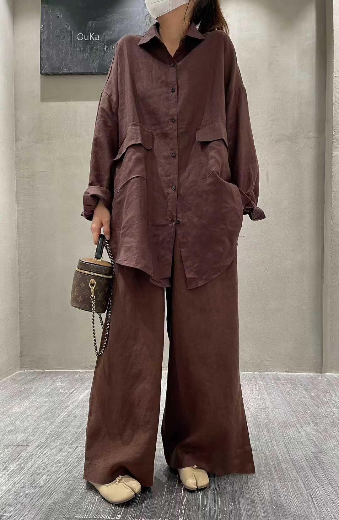Главная страница > Cz2025 летняя новая женская рубашка с лацканами и длинными рукавами, свободный льняной повседневный модный костюм, широкие брюки в стиле ретро