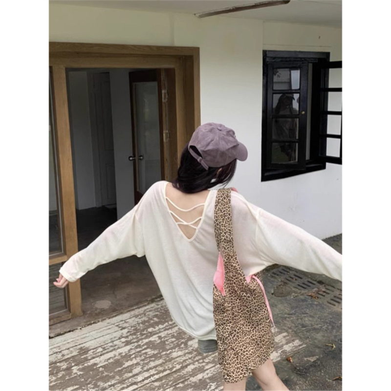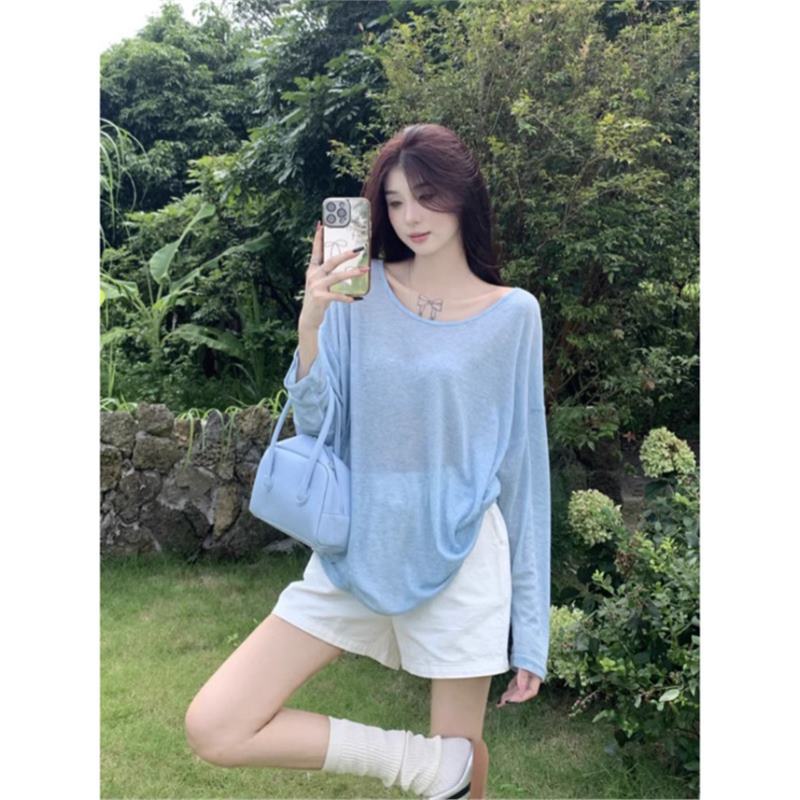 Главная страница > Красотка на спине тюля с длинными рукавами солнцезащитная футболка блузка женская 2025 новая летняя ленивая тонкая свободная средняя длинная топ