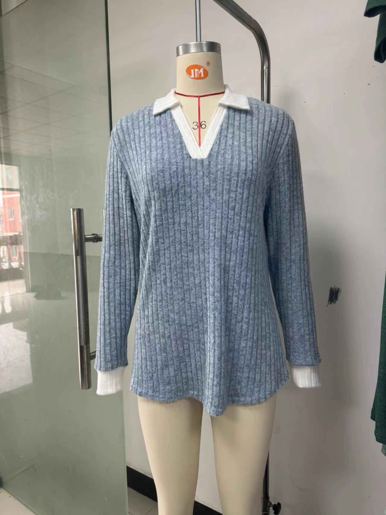 Главная страница > Amazon Европа и США трансграничная внешняя торговля 2024 осень и зима новые контрастные лацканы с длинными рукавами свободная футболка топ женский спот