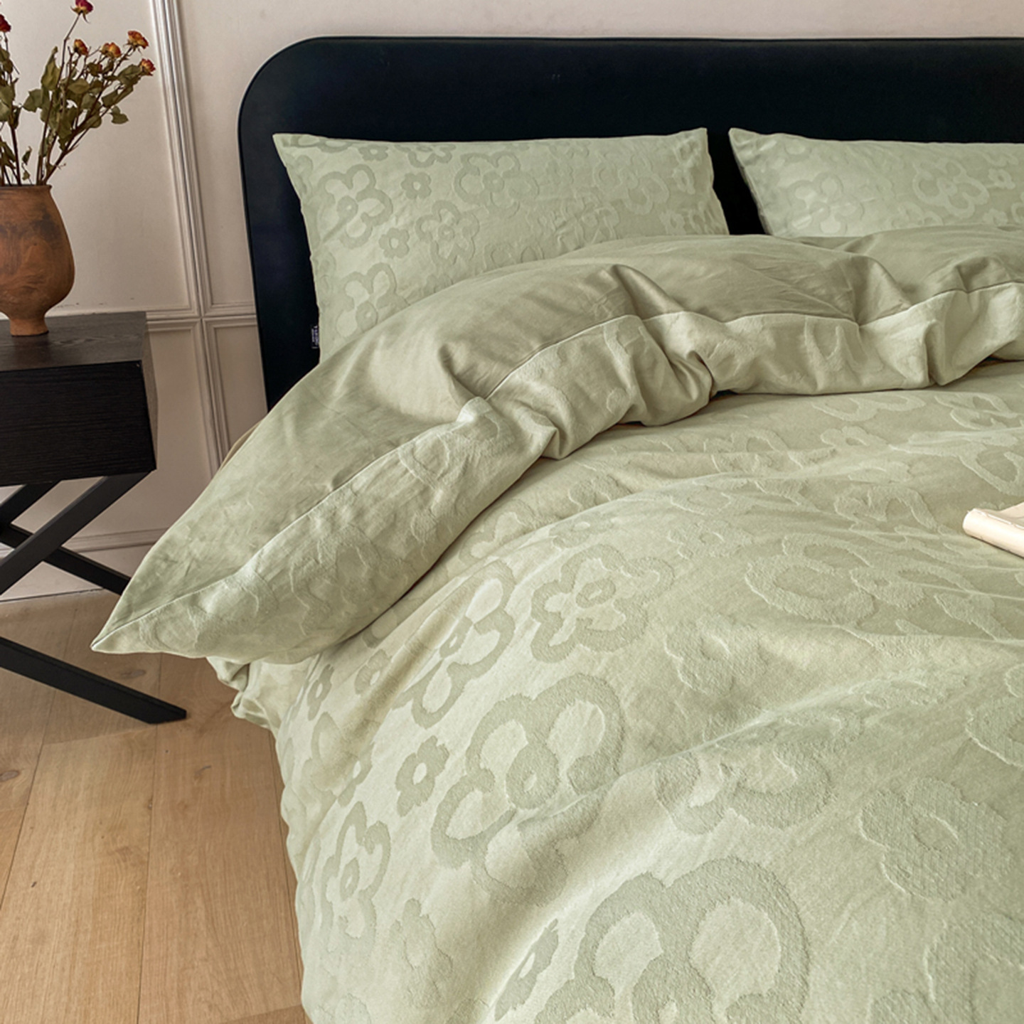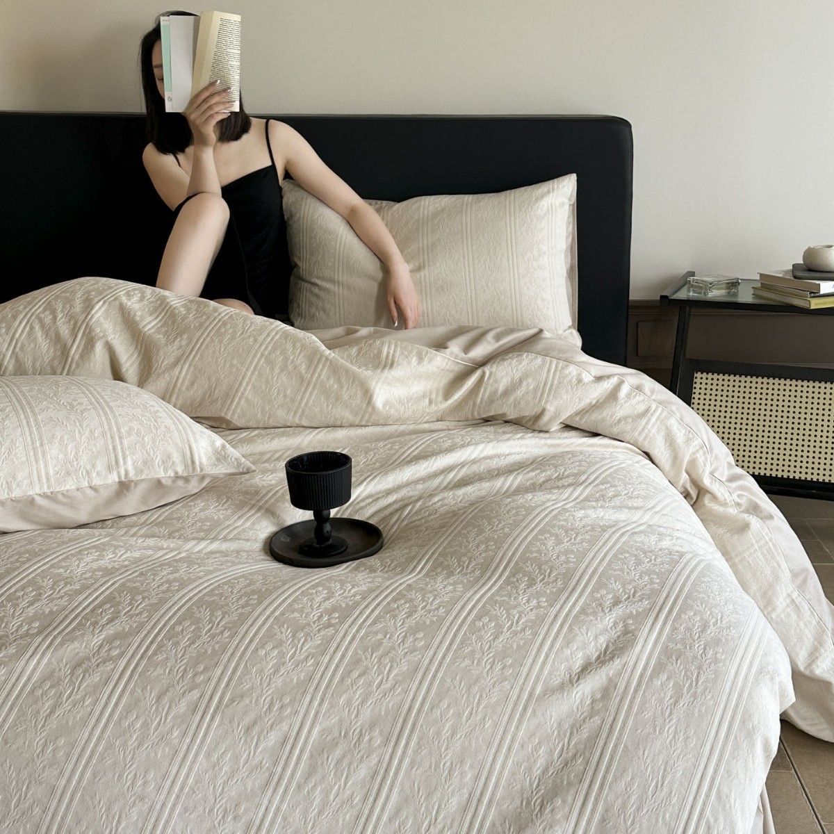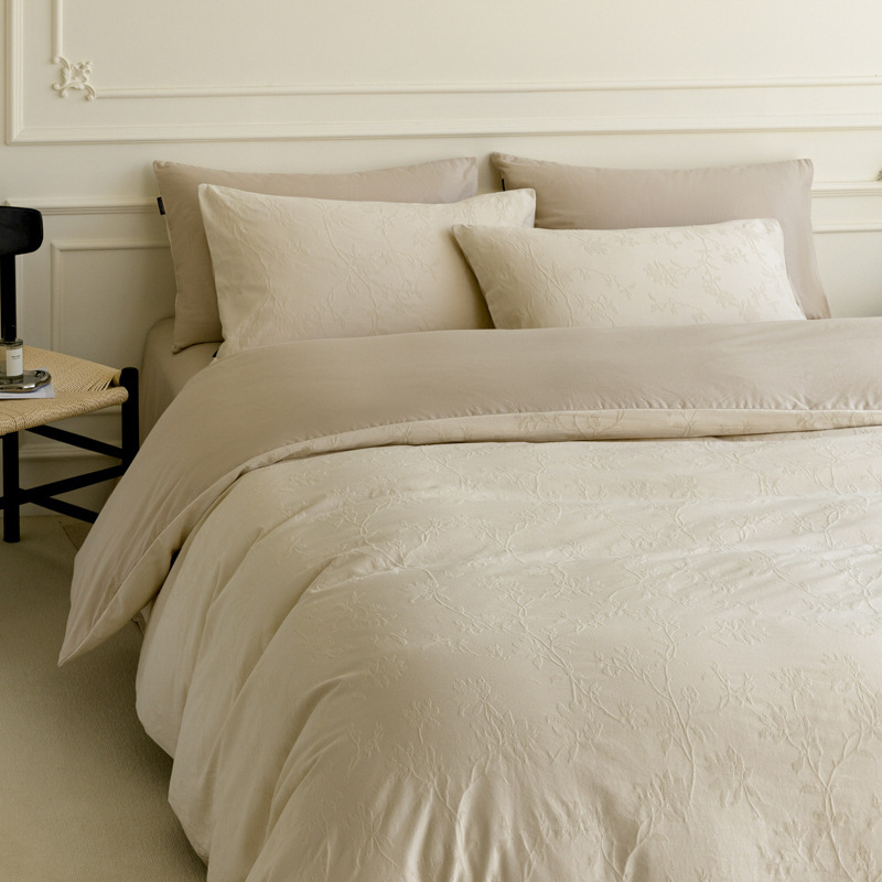 Главная страница > 轻奢高级感厚织全棉高支大提花四件套简约100%纯棉床单床上用品