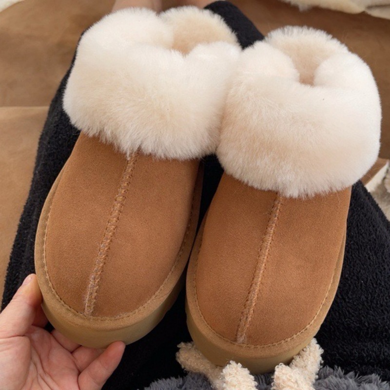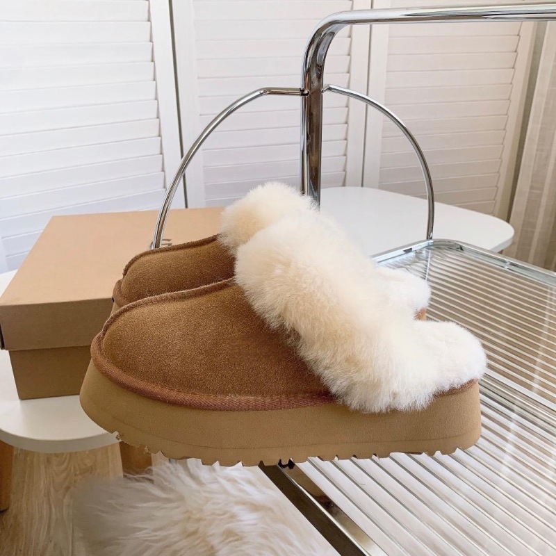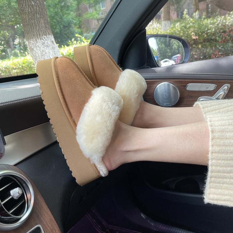 Зимние тапки Qiansong Yi толстая подошва женская кожа шерсть увеличена