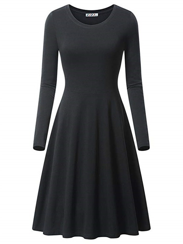 Главная страница > AliExpress Amazon ebay 2022, европейское и американское трансграничное популярное женское однотонное свободное платье с круглым вырезом и длинными рукавами