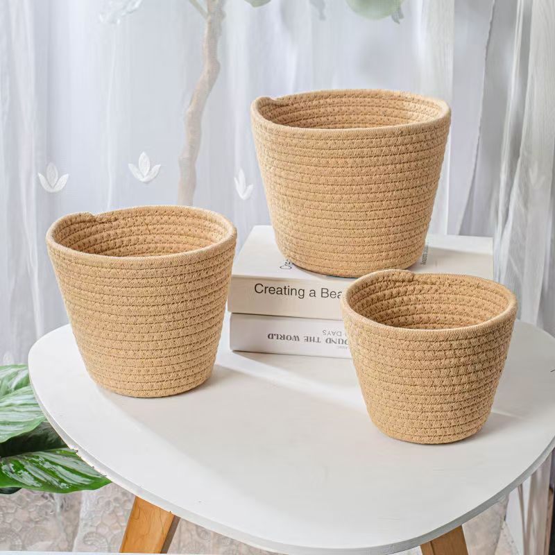 Модная корзина-ведро из хлопкового шнура в форме цветка, корзина-ведро в виде медвежонка, плетеная корзина для декора гостиной, корзина для хранения, чехол для цветочного горшка, корзина для хранения.