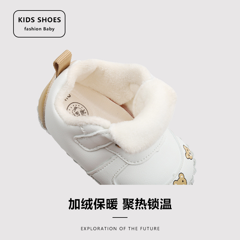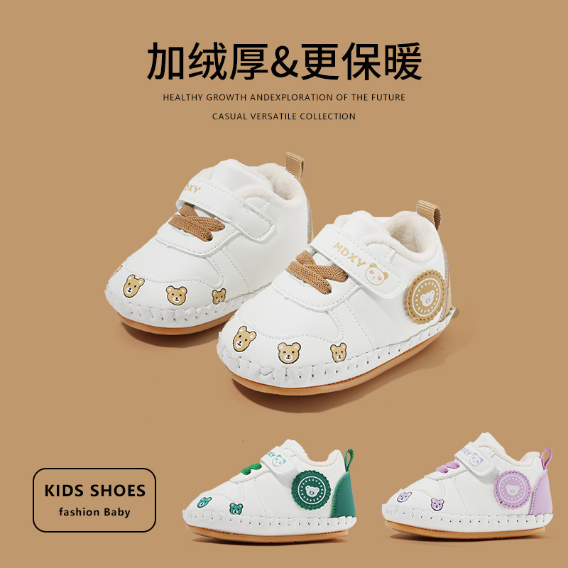 Главная страница > Симпатичная зимняя утолщенная детская обувь на флисовой подкладке, детская обувь с защитой от падения для малышей От 0 до 1 года Мягкая подошва, нескользящая
