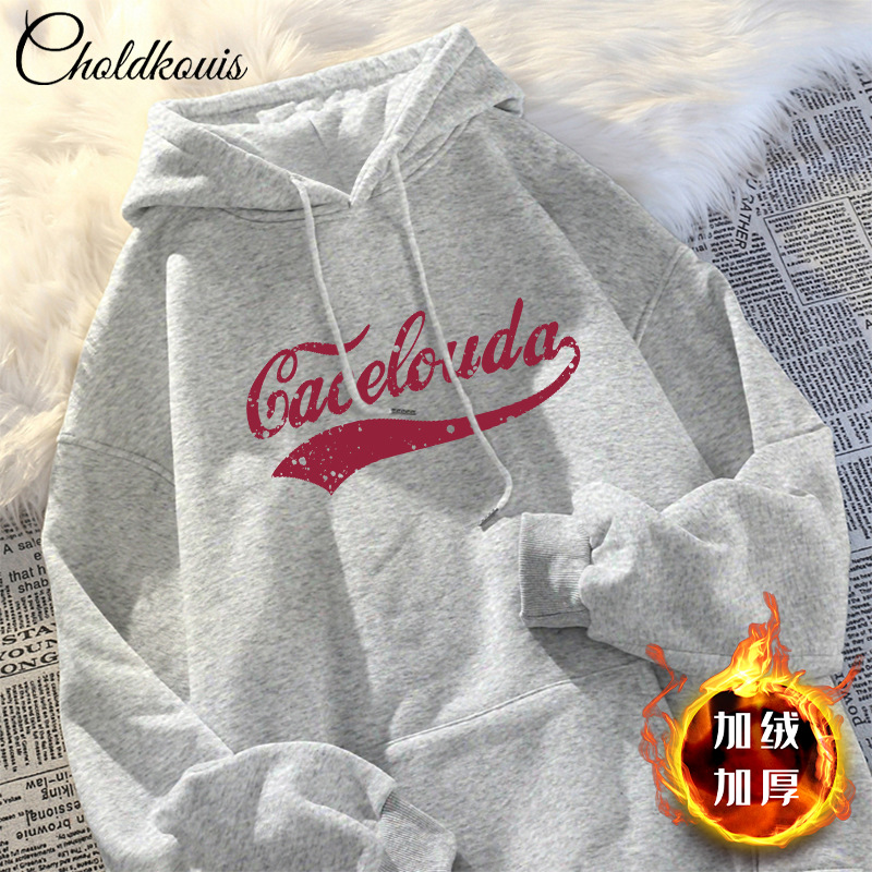 Светло-серая толстовка с капюшоном плюс бархат 455 [GL]