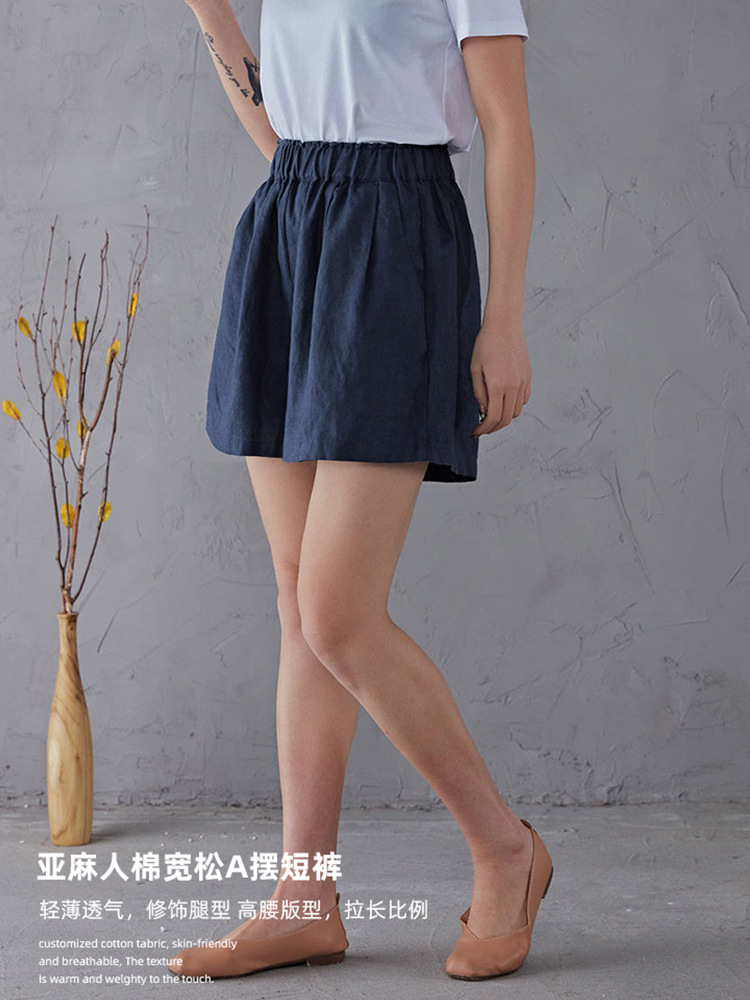 Главная страница > 2025 Летние хлопчатобумажные шорты с высокой талией женские дикие широкие брюки с эластической талией