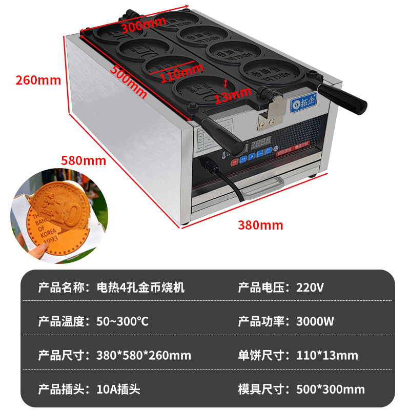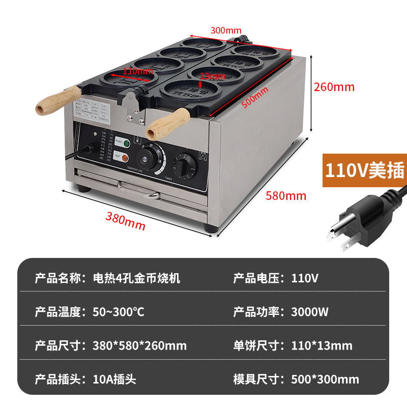 Главная страница > Коммерческая электрическая вафельница для золотых монет 110 В, форма для яичных вафель с эффектом золотого покрытия, трансграничная вафельница для золотых монет