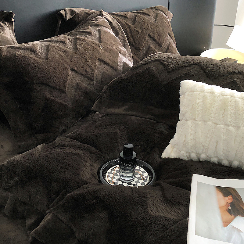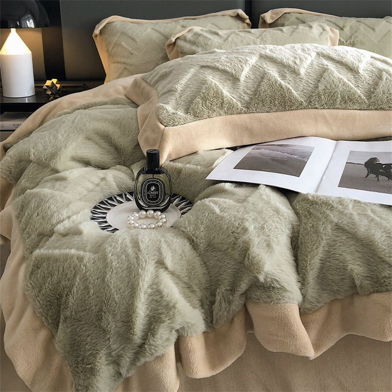 Главная страница > Зимой класс А с высоким весом плюша кролика утолщенный теплый молочный бархат набор из четырех частей