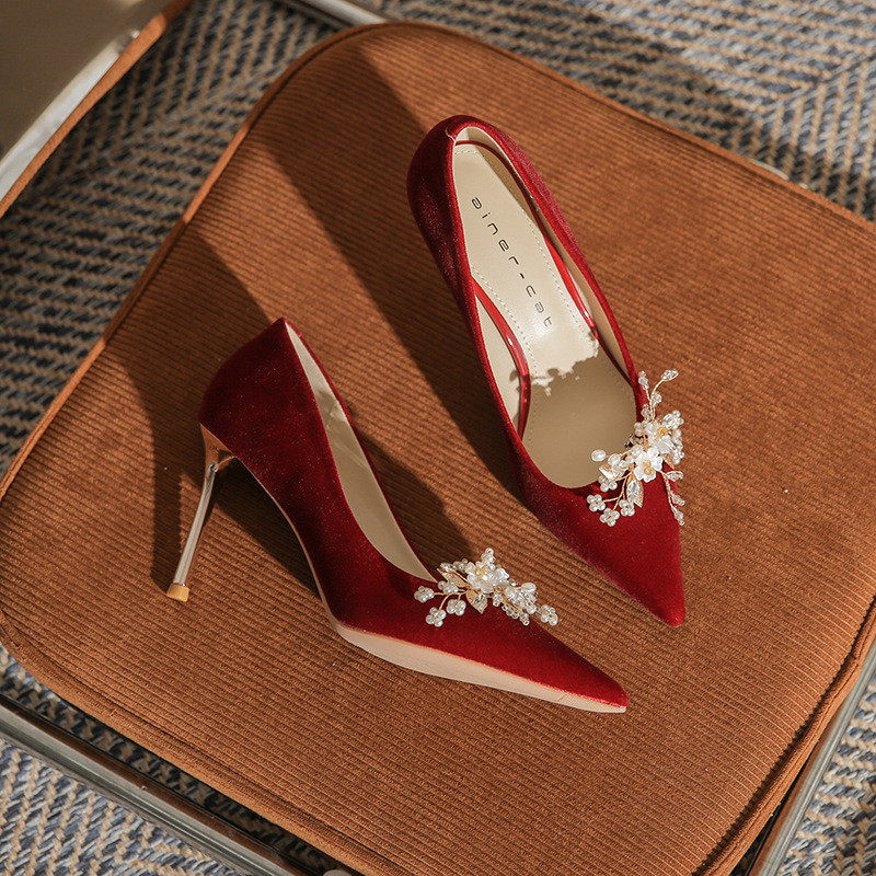 Главная страница > Туфли на высоком каблуке для женщин, шпилька, новинка 2025 года, заостренный носок, неглубокий вырез, одиночные туфли, подходят как для традиционного китайского свадебного платья, так и для свадебного платья в западном стиле, свадебные туфли.