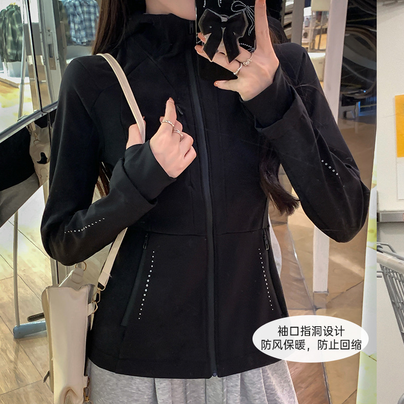 Главная страница > Черная мягкая куртка с мягкой оболочкой куртка женская весенняя и осенняя стройная куртка с бархатной кардиган на открытом воздухе спортивный топ