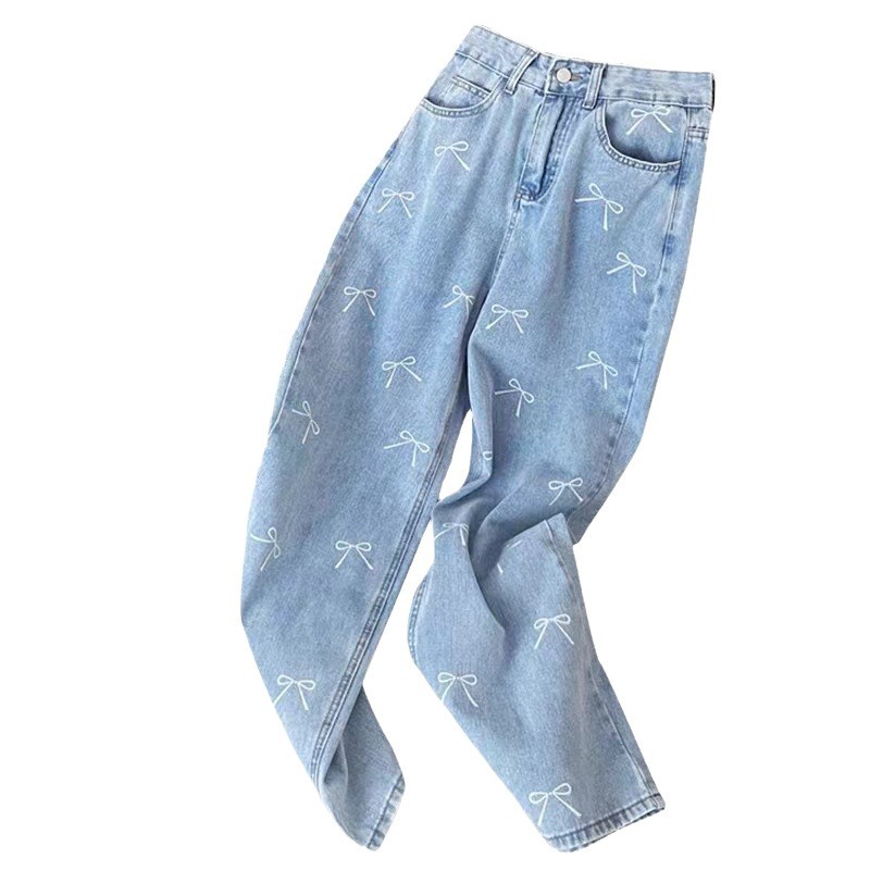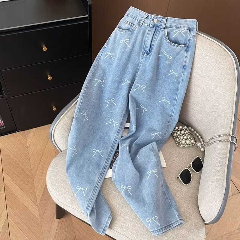 Главная страница > Дизайн с принтом банта сладкие пряные джинсы женские летние новые узкие прямые брюки с высокой талией модные длинные брюки