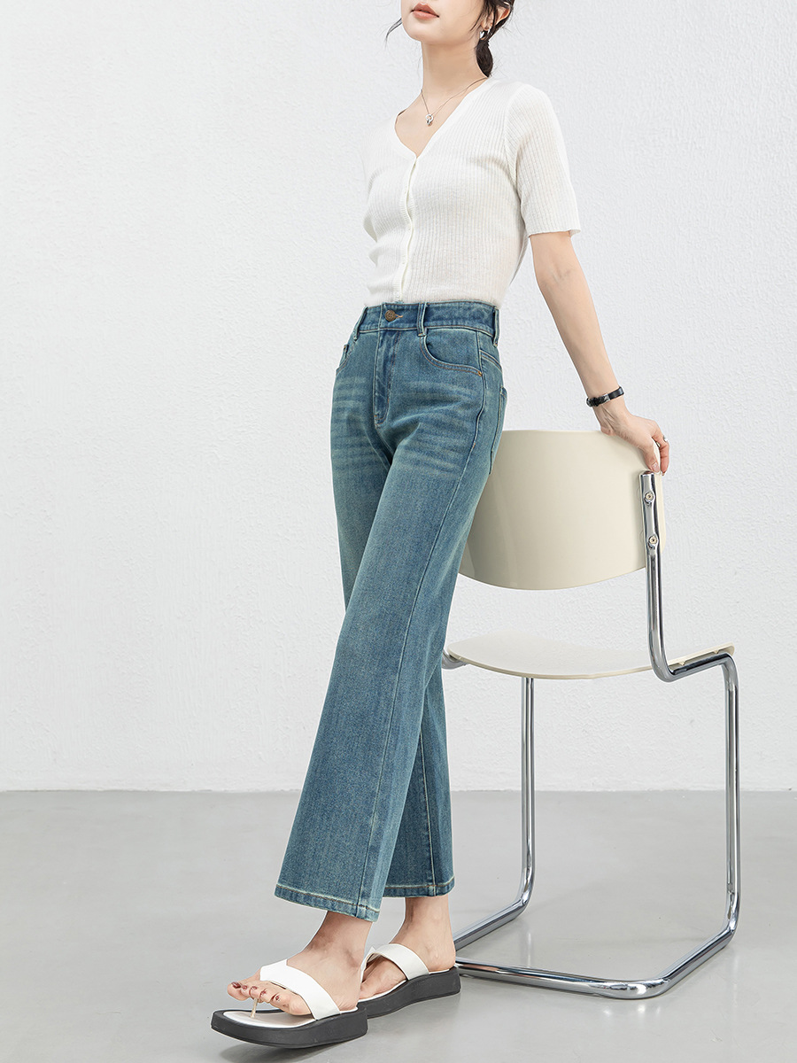 Главная страница > Если 2021, летние новые стильные джинсовые брюки со средней талией, слегка расклешенные девятиточечные брюки для женщин, эластичные узкие расклешенные брюки с четырьмя направлениями 8172