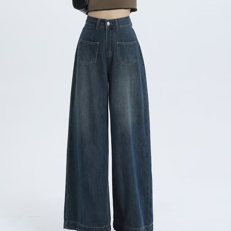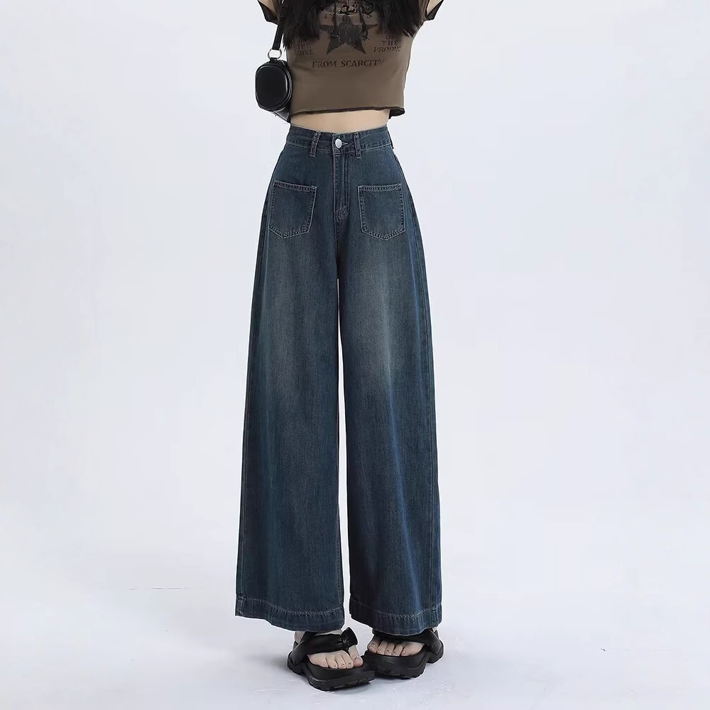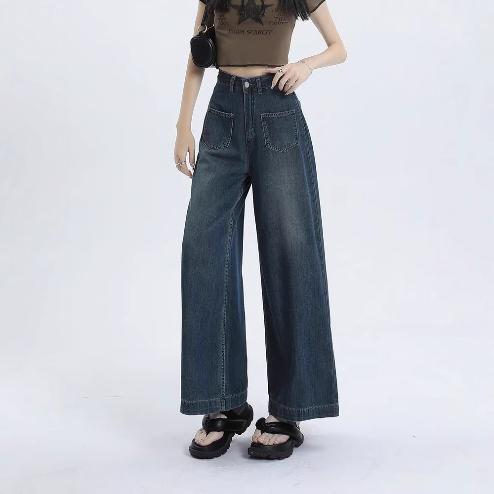 Главная страница > Широкие джинсы в американском стиле ретро для женщин, лето 2024, новые свободные прямые брюки с высокой талией для миниатюрных женщин, осень