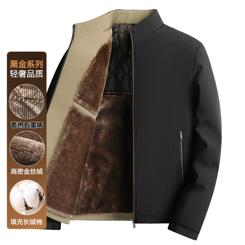 Главная страница > Черная золотая куртка папа куртка с воротником 2024 зимняя одежда плюс бархат бизнес повседневная толстая мужская куртка среднего возраста