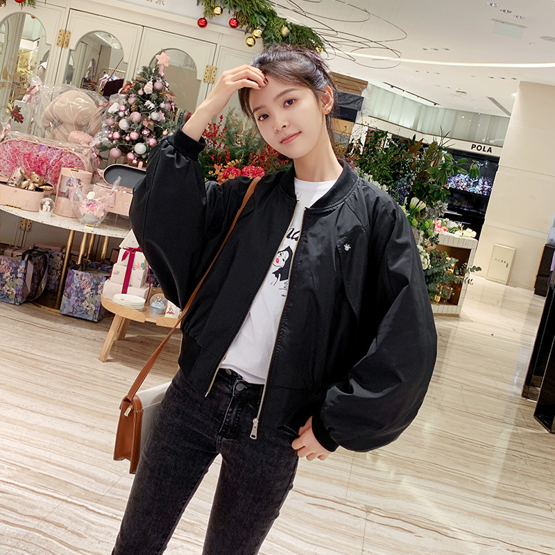 Главная страница > [Mengmei] 25 весенних черных пальто для учениц женского пола свободный тонкий бейсбольный костюм гонконгский стиль куртки короткий