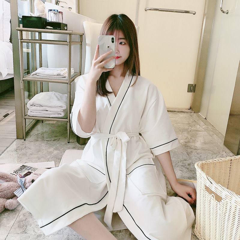 Главная страница > Весенне-летняя ночная рубашка для пар, сексуальная однотонная хлопковая короткая женская пижама с длинными рукавами, халат большого размера, домашняя одежда средней длины