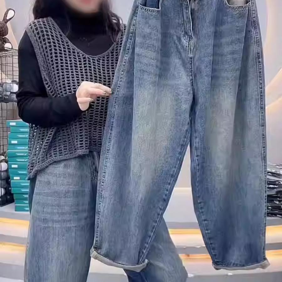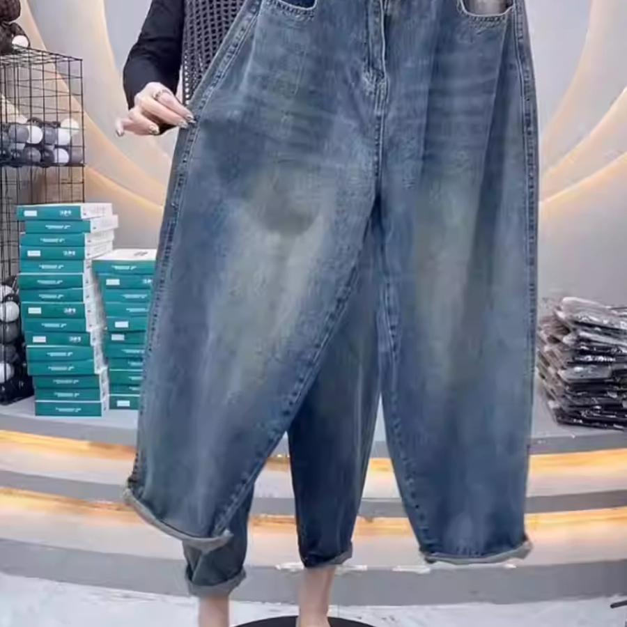 Главная страница > Винтажные женские джинсы-шаровары в европейском стиле, новые больших размеров, утягивающие с высокой талией, больших размеров, грушевидной формы, брюки для папы.