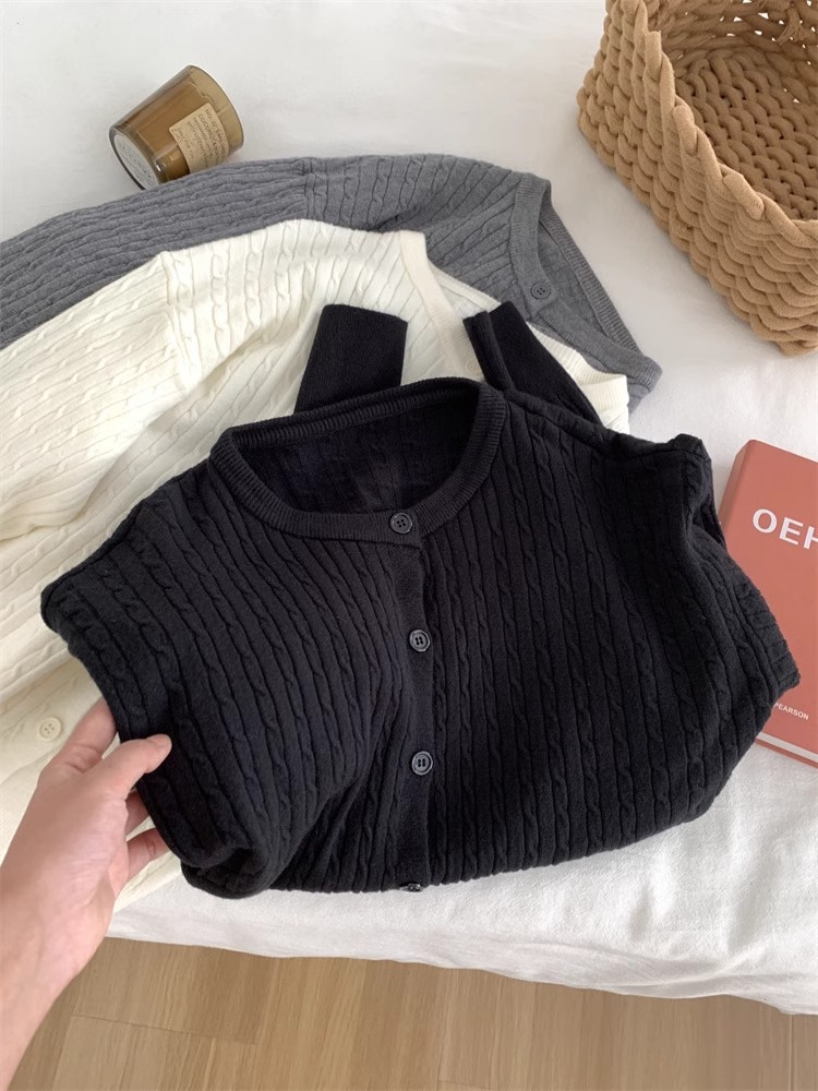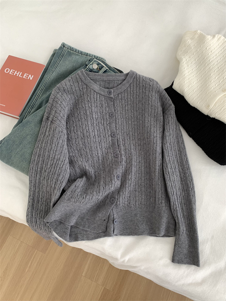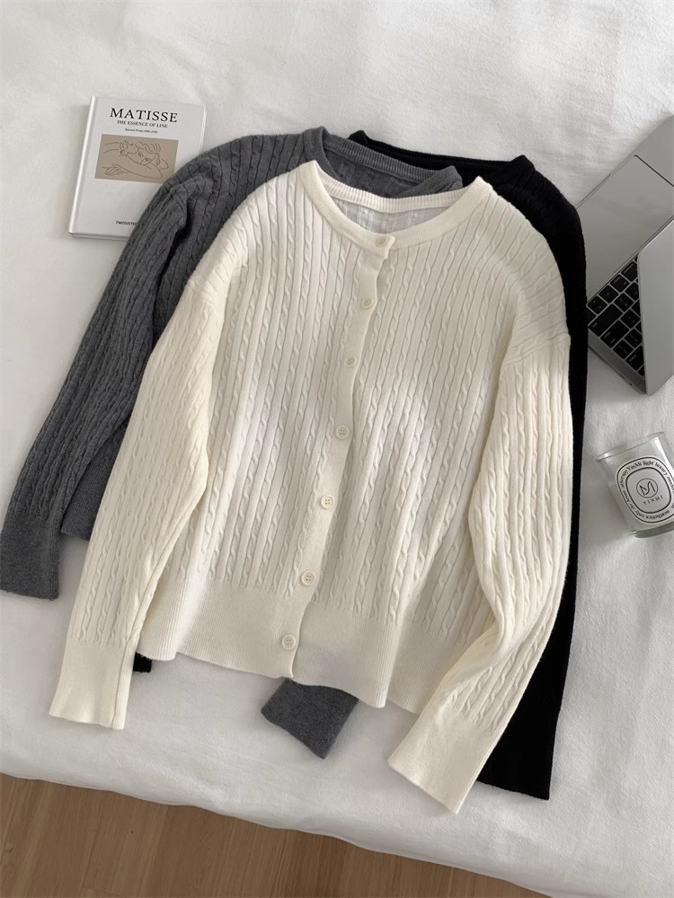 Главная страница > Простой корейский маленький твил с круглым вырезом трикотажный кардиган женский тонкий повседневный модный дикий весенний тонкий свитер пальто