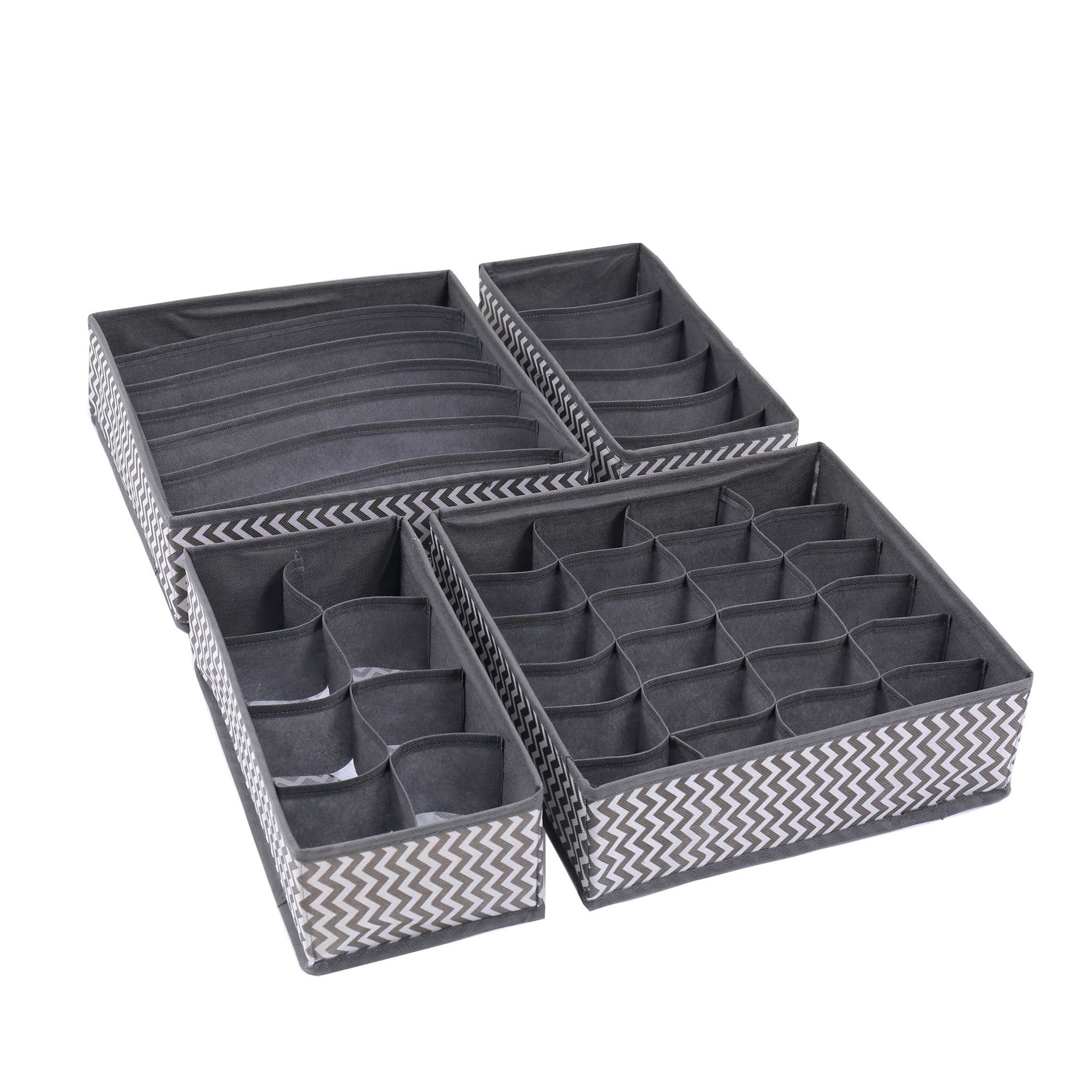 Набор из четырех органайзеров для хранения нижнего белья и носков, тканевые, для дома, цвет: серый (Off-white)
