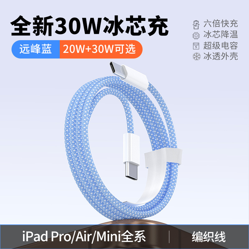 PD 1m синий, подходит для 8-14 Apple PD, комплект для быстрой зарядки, коробка 30 Вт
