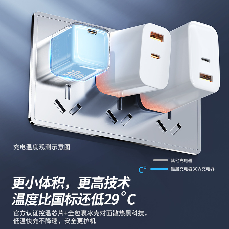 Зарядное устройство из нитрида галлия PD30W — белое/в упаковке