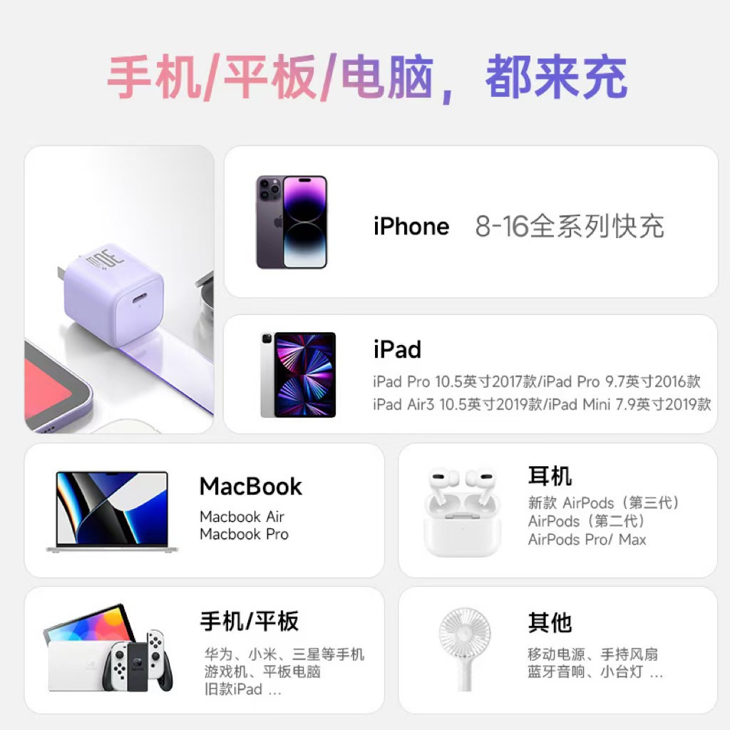 Главная страница > PD30W нитрид галлия быстрая зарядка подходит для зарядного устройства Apple, iPhone8-16 мобильный телефон Полная серия зарядных головок
