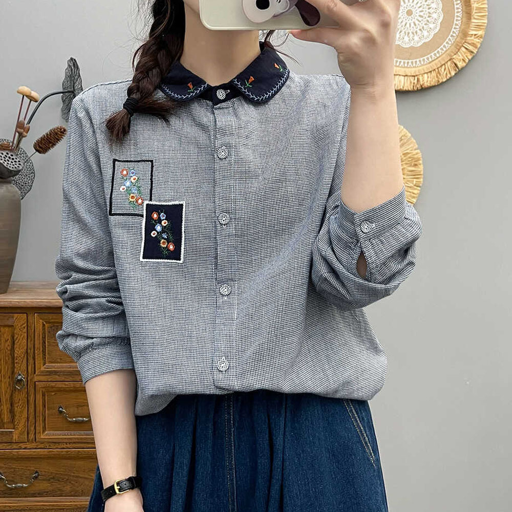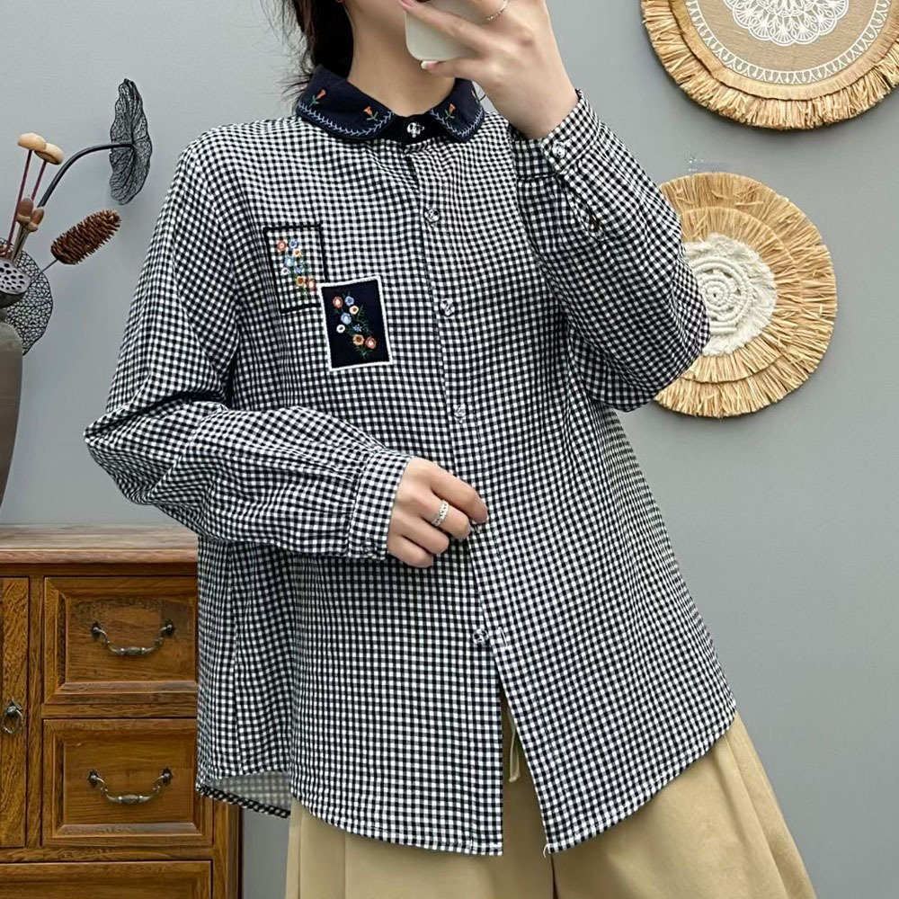 Двухслойная хлопчатобумажная пряжа цифровая рубашка с длинными рукавами женская осень новая мягкая восковая кожа универсальный рубашка женская одежда