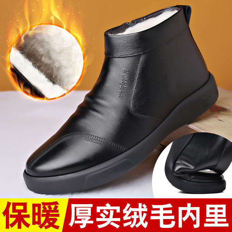 Мужская хлопчатобумажная обувь зимой теплая, бархатная и утолщенные снежные сапоги меха