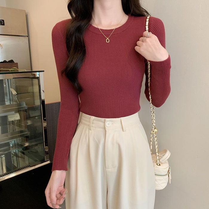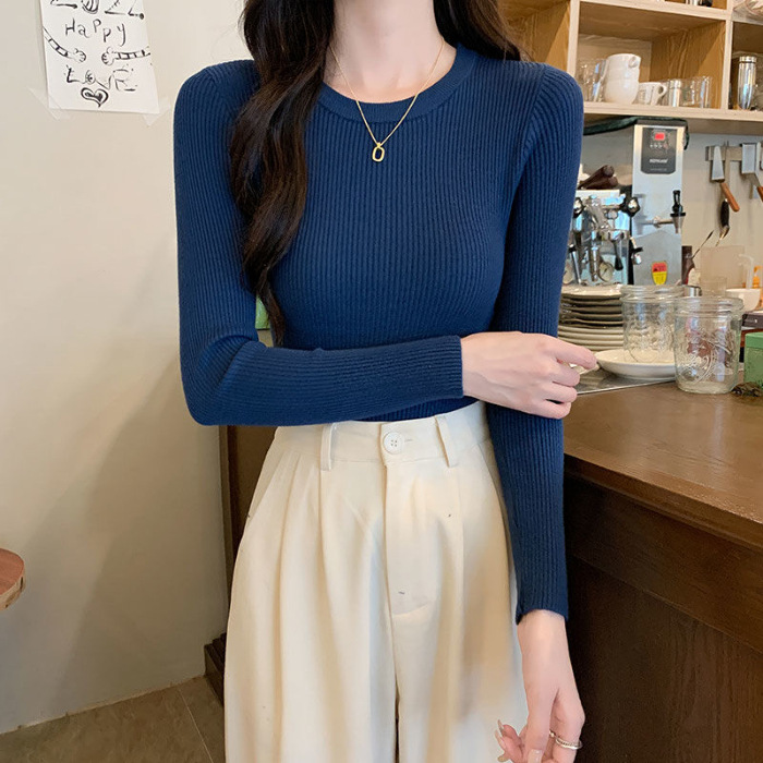 Главная страница > Свитер 2025, новая женская облегающая черная рубашка с внутренним слоем, осенне-зимний стиль, трикотажный топ с круглым вырезом и длинными рукавами