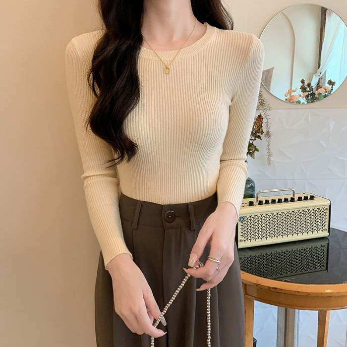 Свитер 2025, новая женская облегающая черная рубашка с внутренним слоем, осенне-зимний стиль, трикотажный топ с круглым вырезом и длинными рукавами