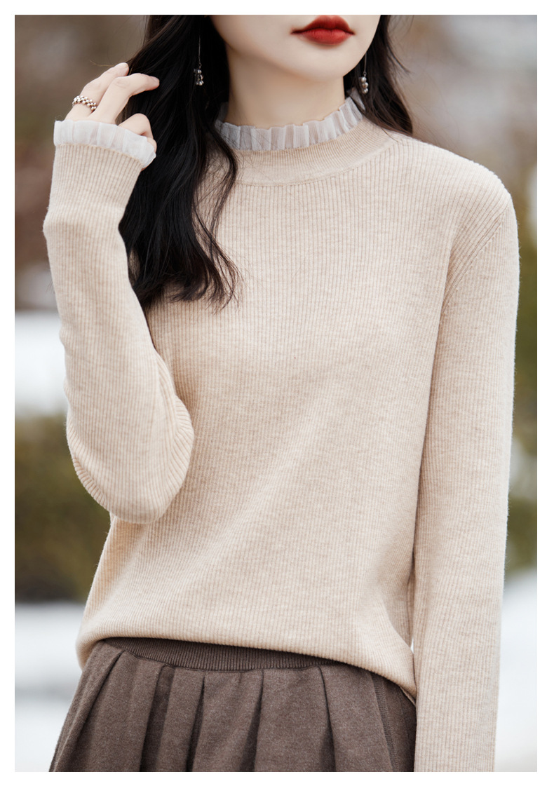 Главная страница > Весенний стиль 2025 новый деревянный кружевной трикотаж женский пол-высокий воротник сплошной цвет тонкий пуловер свитер нижняя рубашка женский