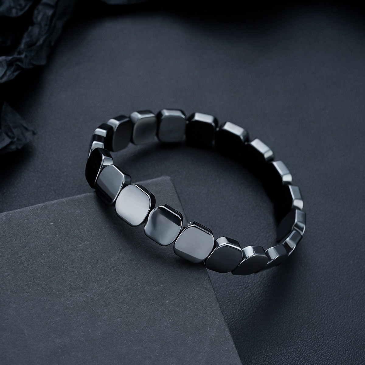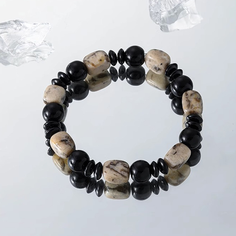S050-A (двухслойный браслет из черного драгоценного камня)