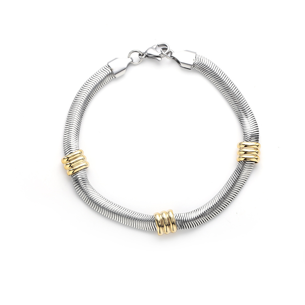 S769-A (плоский браслет из змеиной кости с золотыми бусинами)