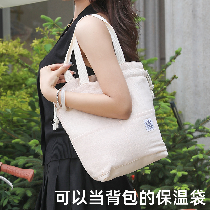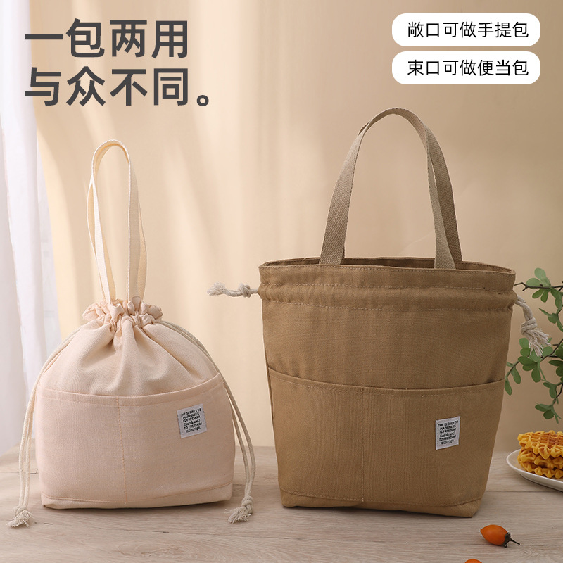 Главная страница > повседневная сумка для хранения, изоляционная сумка большой емкости на шнурке, холщовая сумка для пикника в японском и корейском стиле из хлопка и льна в индустриальном стиле, сумка для обеда