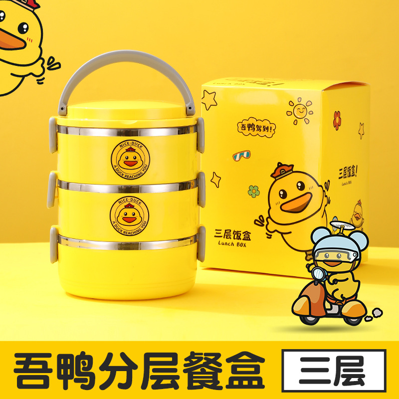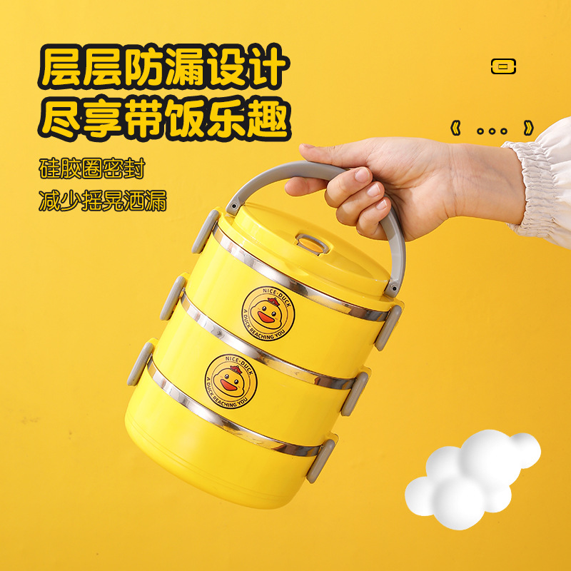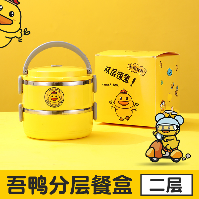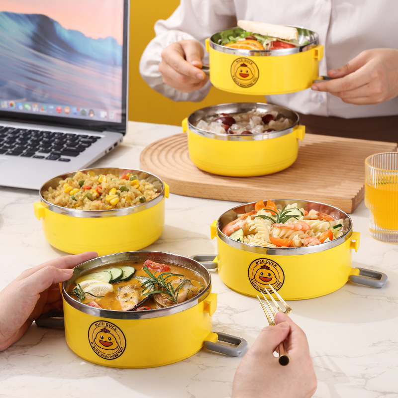 Главная страница > 304 нержавеющая сталь желтая утка Изолированная коробка для завтрака многослойная пластиковая коробка для завтрака круглая портативная коробка для завтрака Доставка подарка