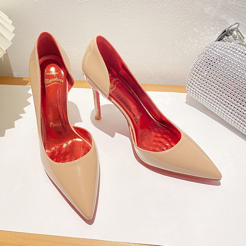 Боковая пустая замша черного цвета с красной нижней частью (10 см)