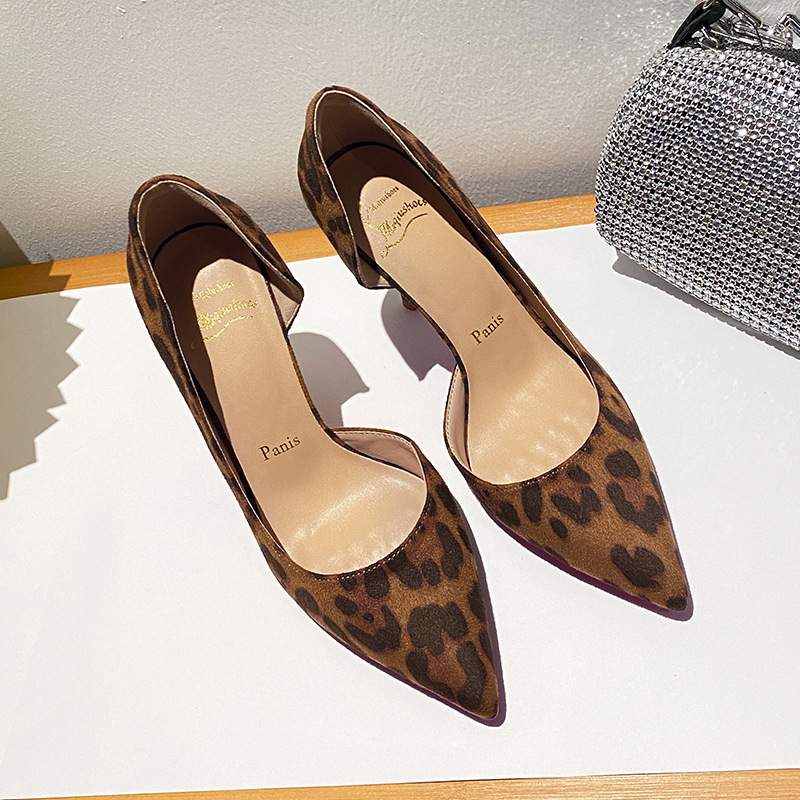 Главная страница > 2025 новый замшевый боковой пустой каблук женский каблук модный легкий рот сексуальный дикий остроконечный профессиональный леопардовый узор