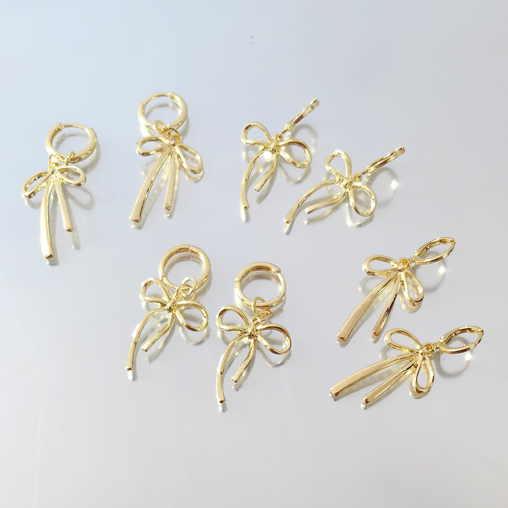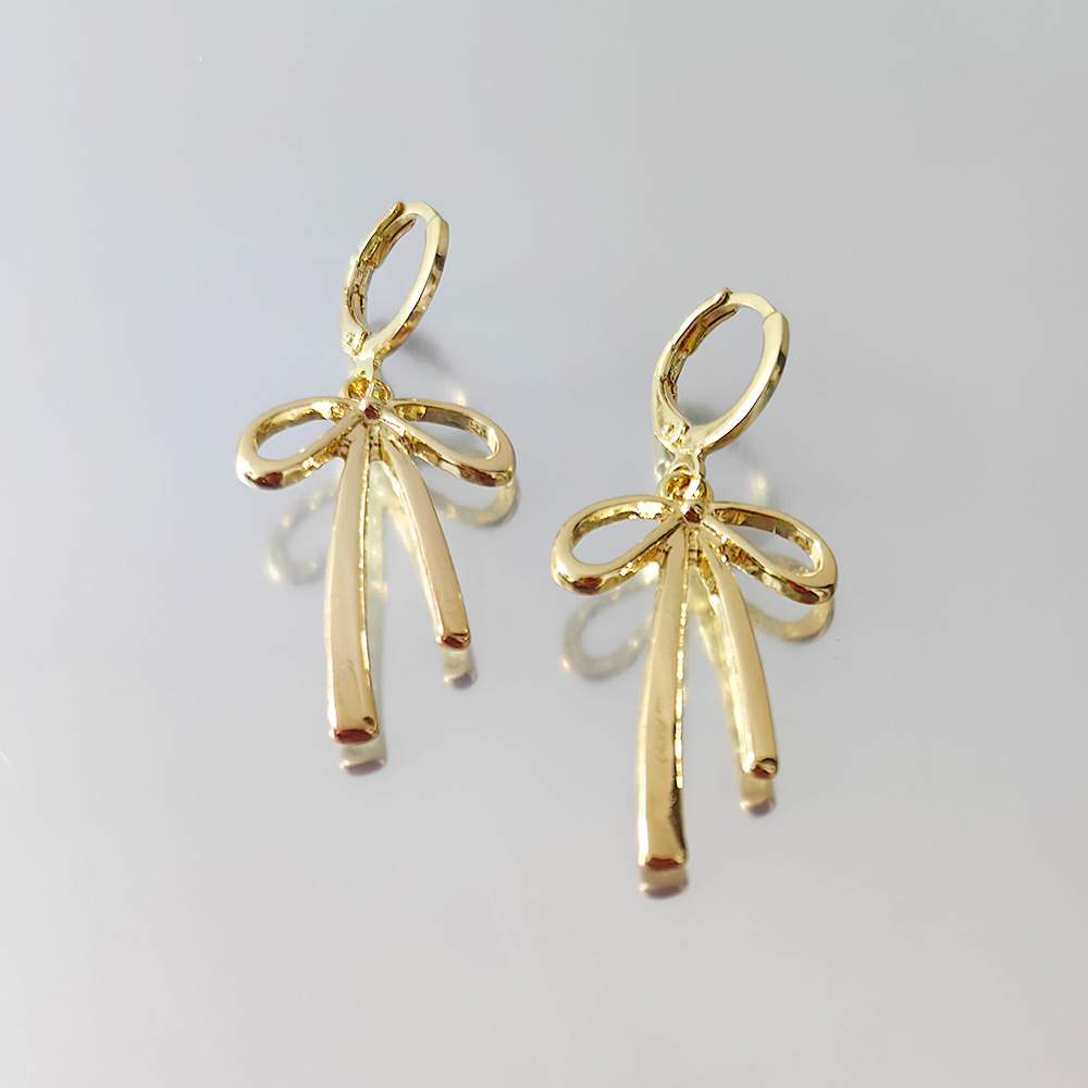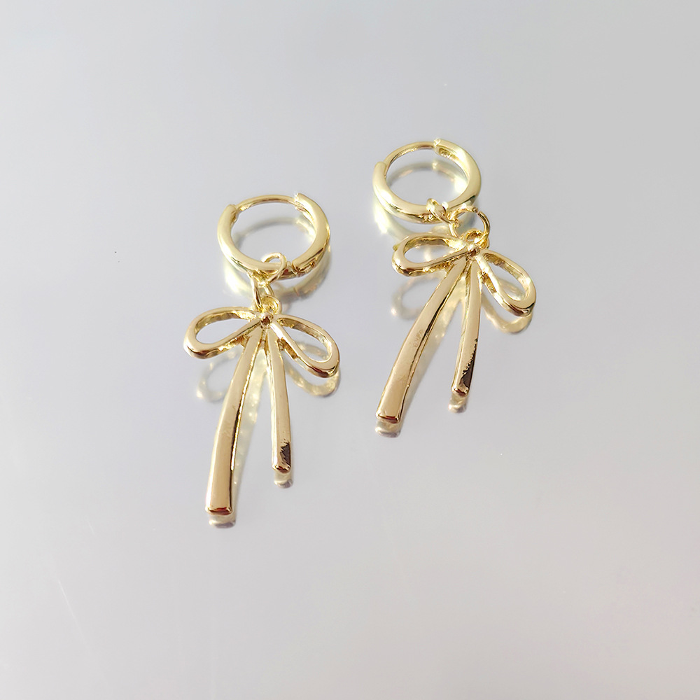 Сладкий и крутой лук-серьги модный простой простой круговой медный барабан пряжка Гонконг-это глянцекая металлическая ушная кружка 2025 ювелирные изделия оптом