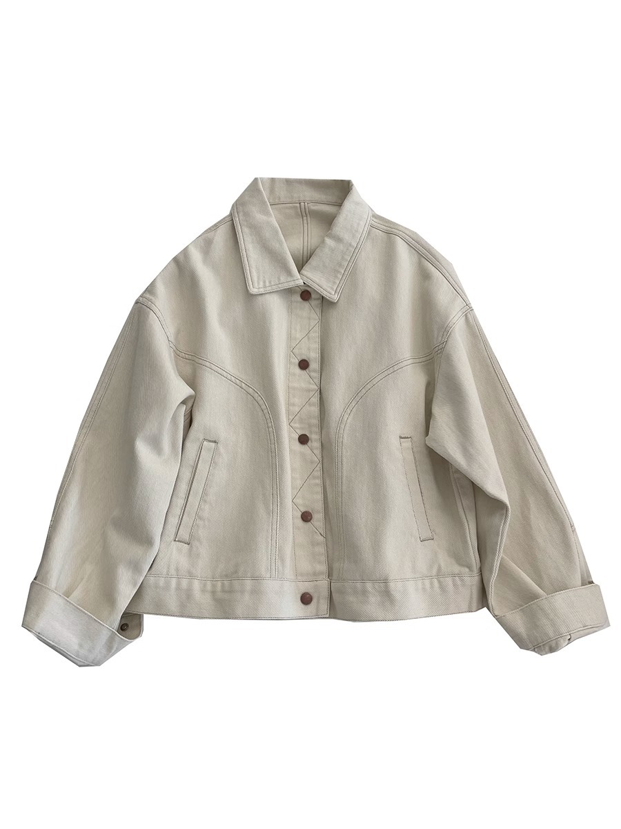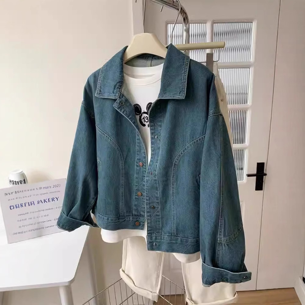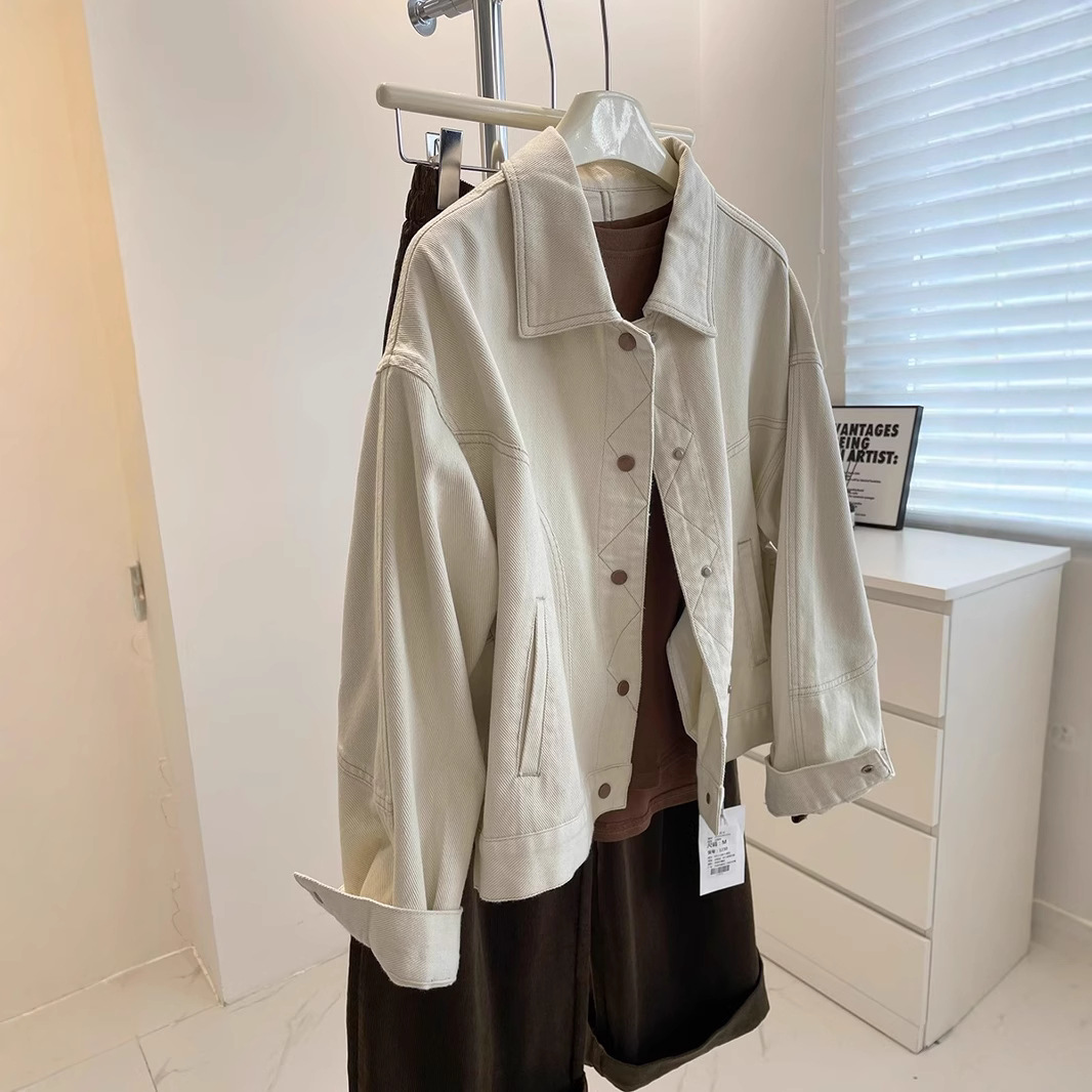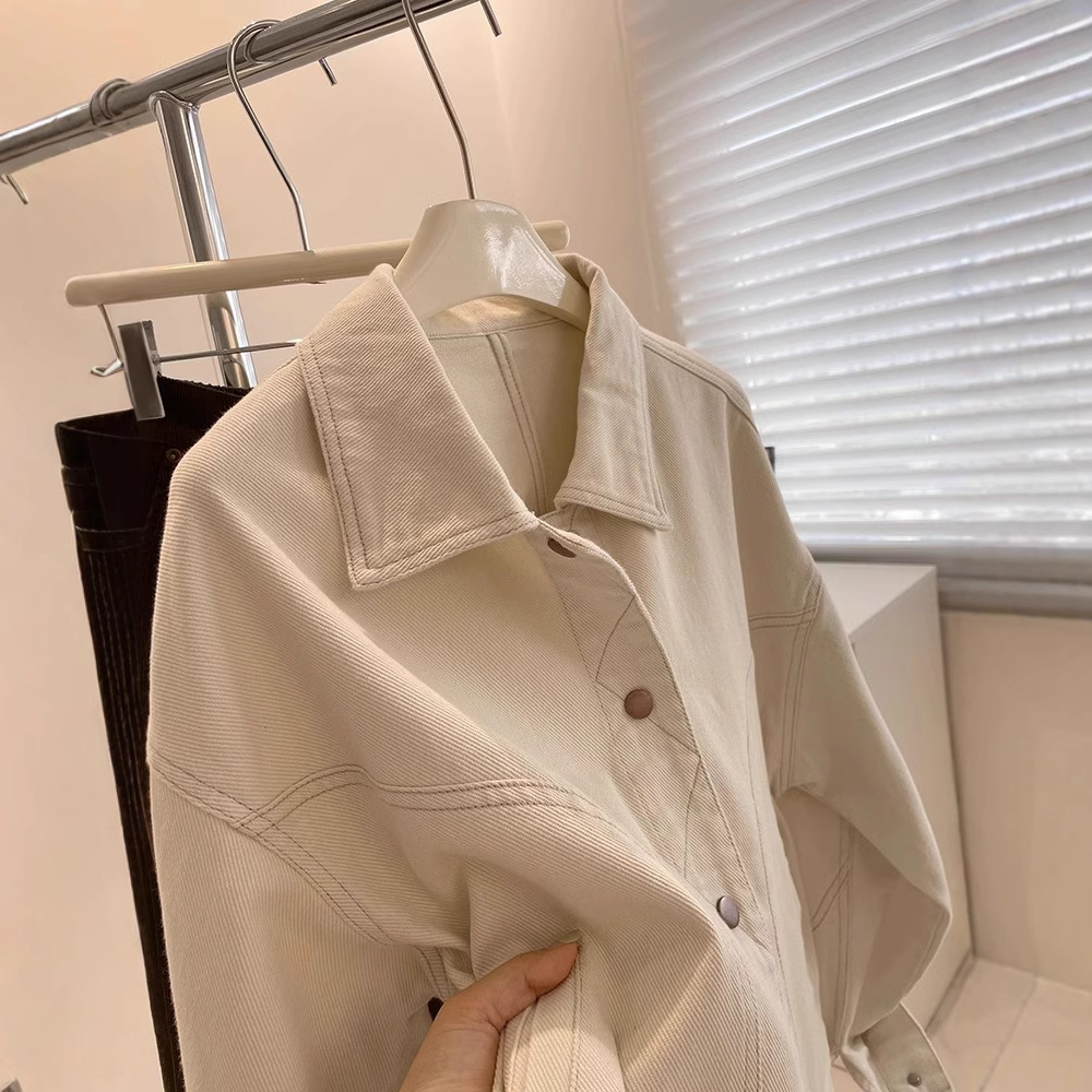 Главная страница > Корейская бежевая джинсовая куртка! Весенний и осенний дизайн линии дикая тонкая свободная повседневная короткая куртка топ женский