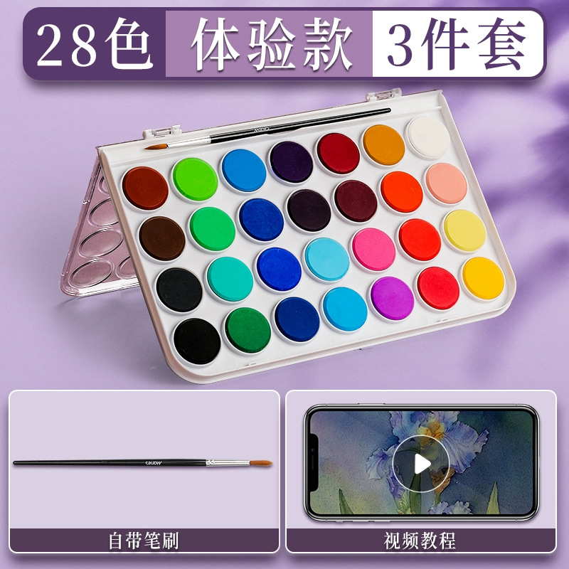 [48 цветов] Твердая акварель в железной упаковке + складное ведро/внутри 7 шт.