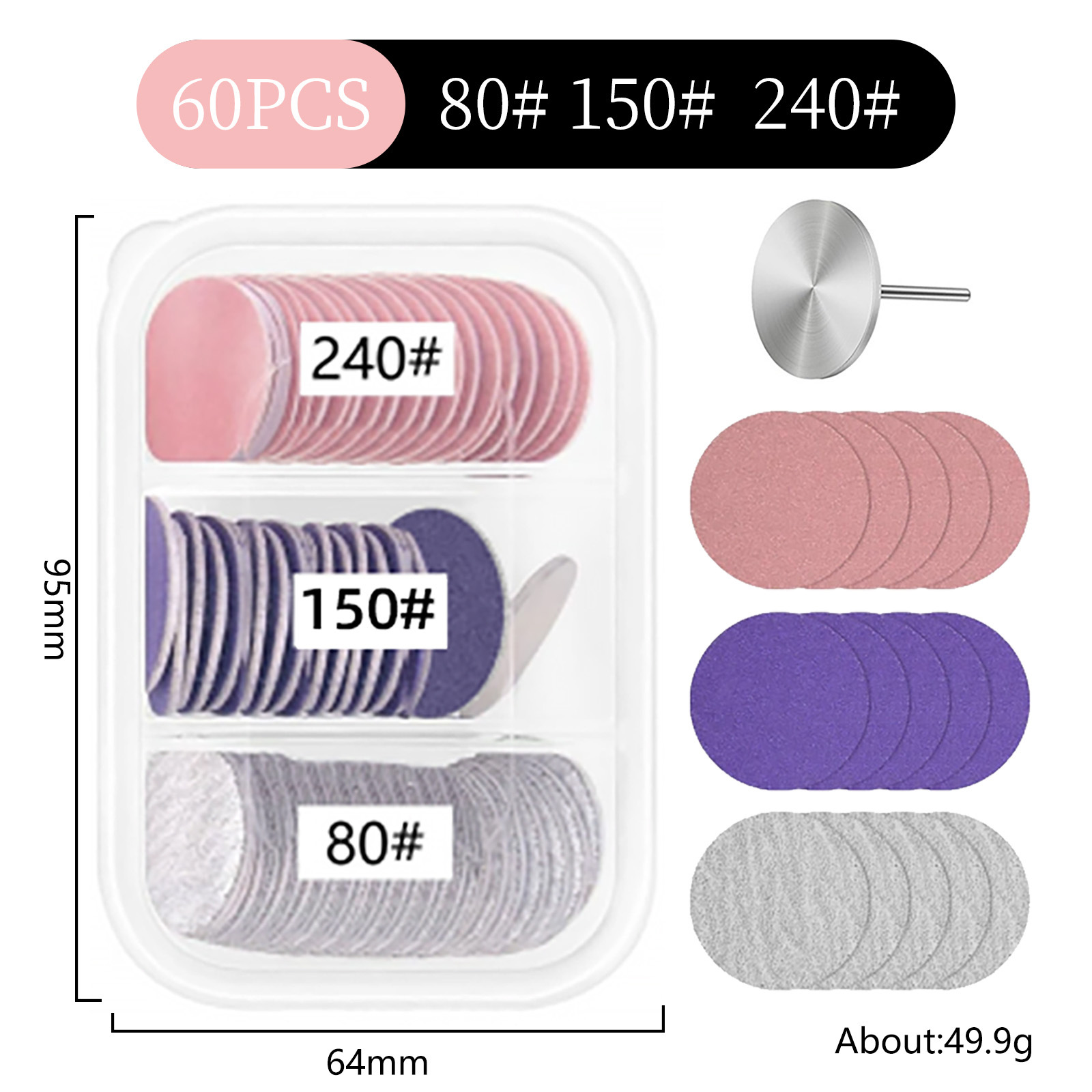 Маленький трехрешетчатый песчаный диск диаметром 25 мм, черный 80 # , фиолетовый 150 # , розовый 240 # (включая вал)