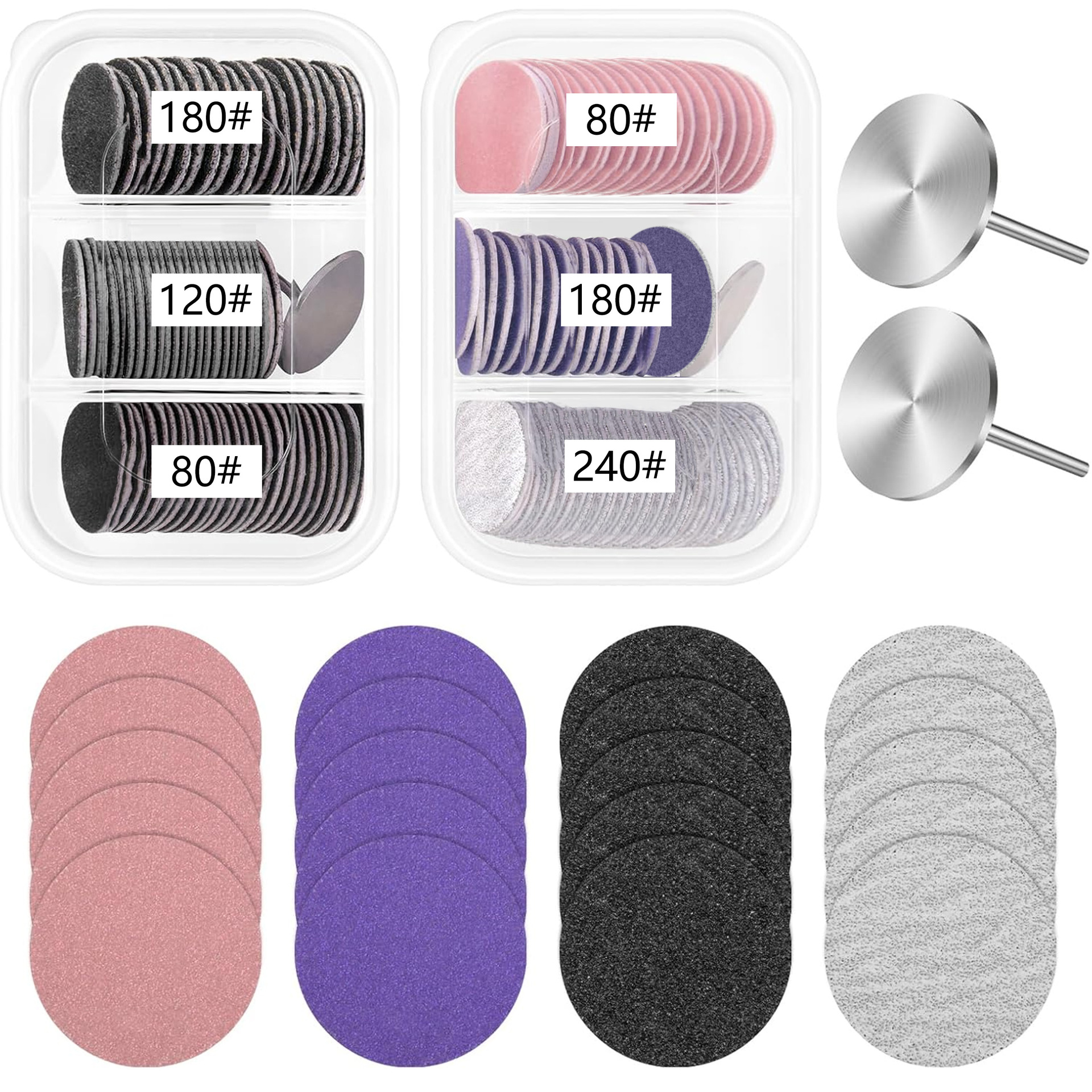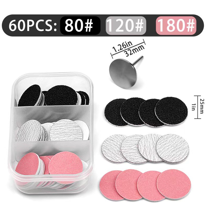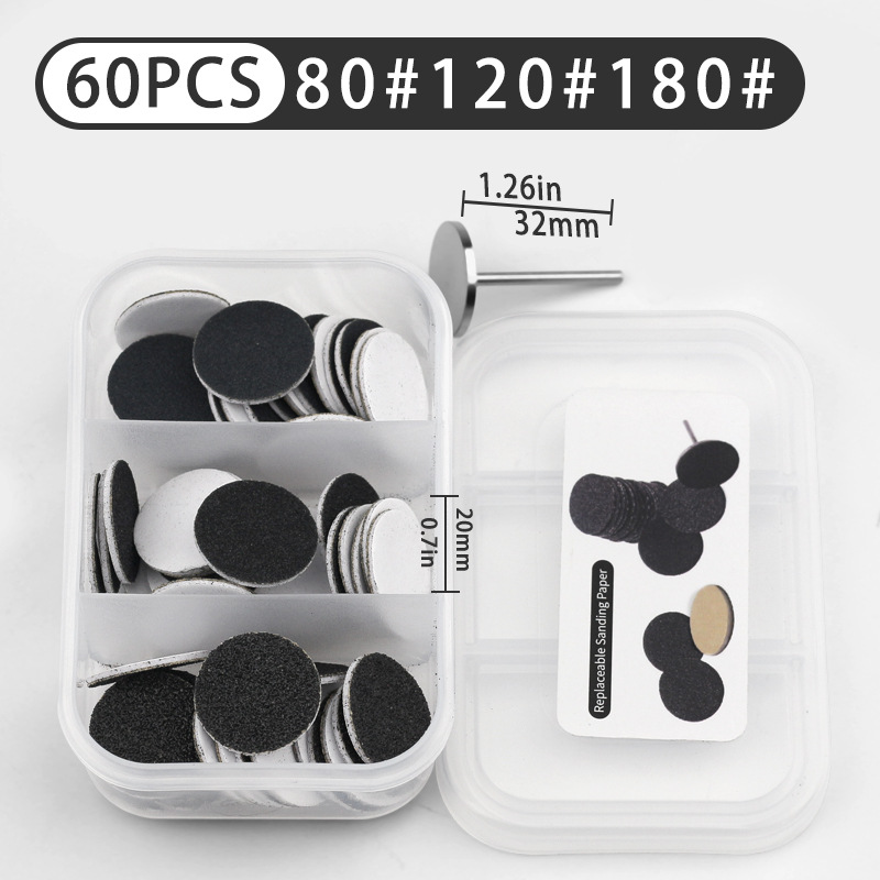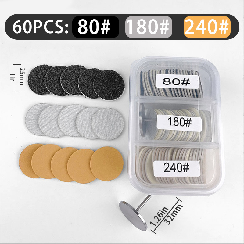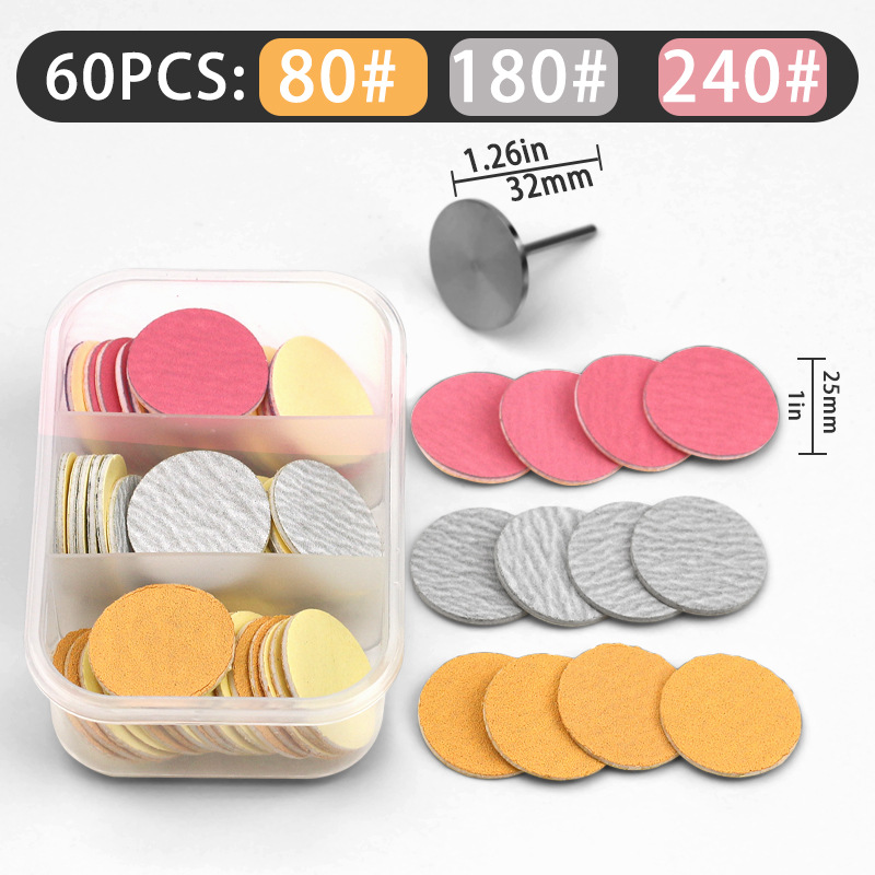 Маленькие трехрешетчатые песочные диски диаметром 25 мм: 2 коробки/комплект из 120 песочных дисков, включая 2 вала.