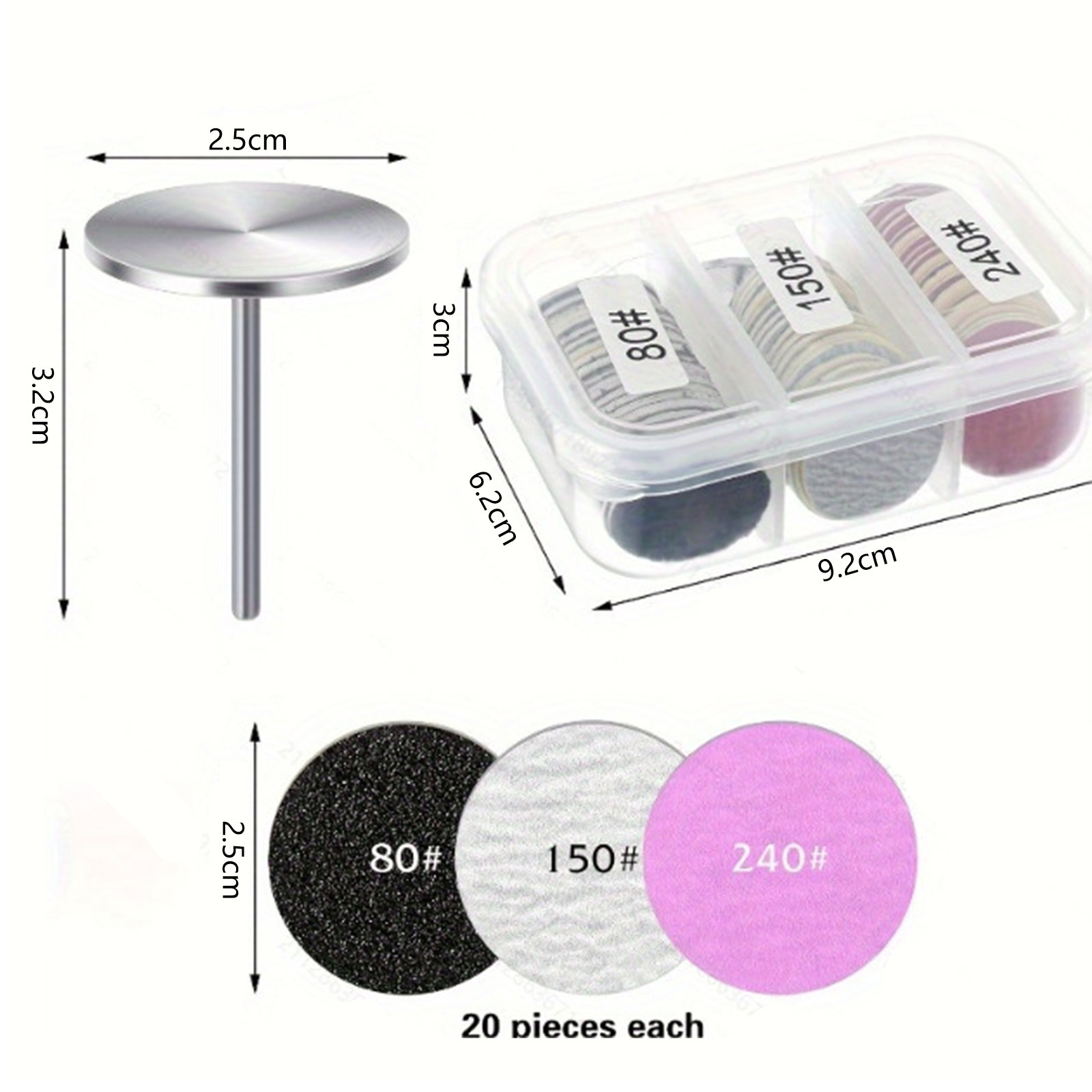 Маленький песочный диск с тремя сетками, 20 мм, желтый 80#, белый 180#, розовый 240#(включая вал)