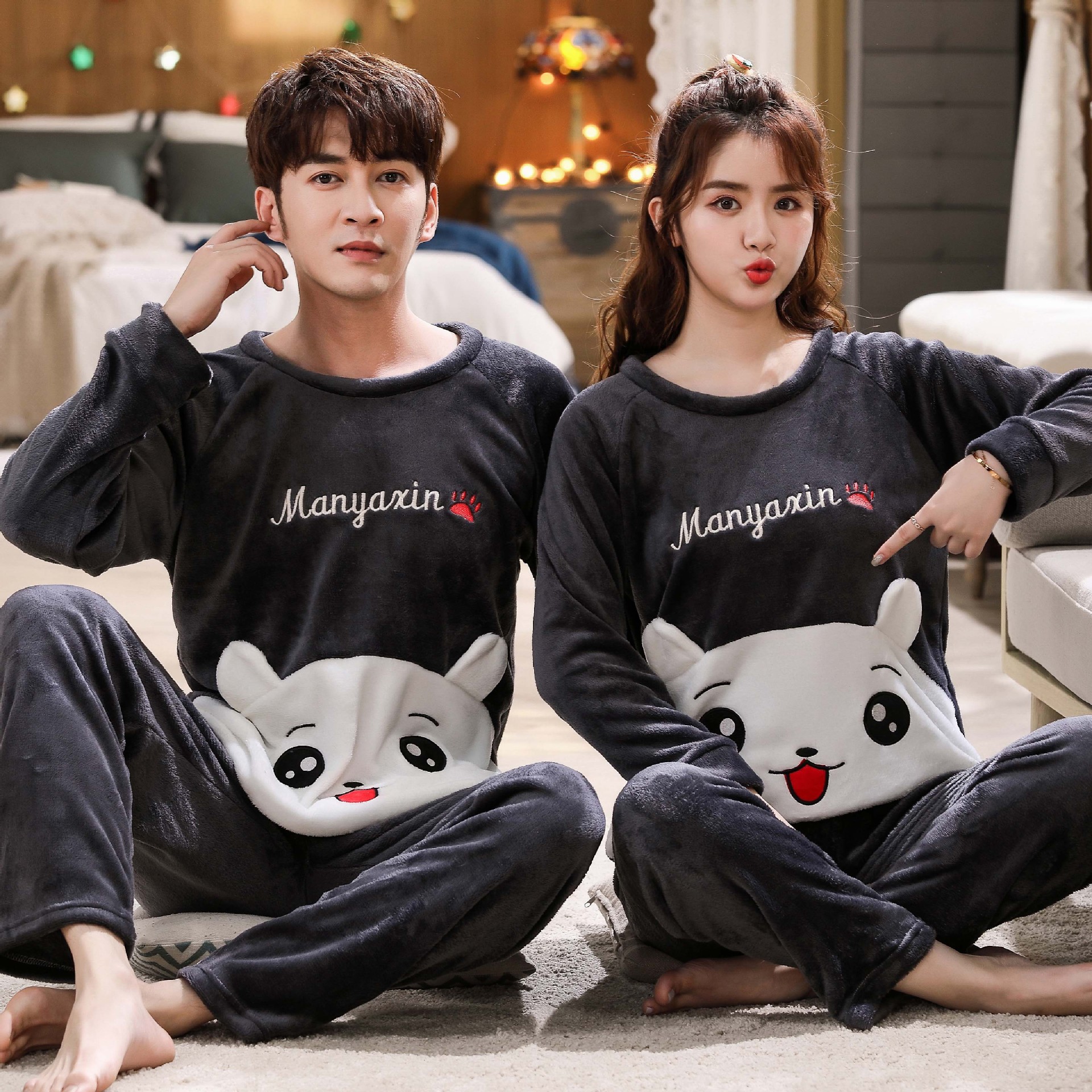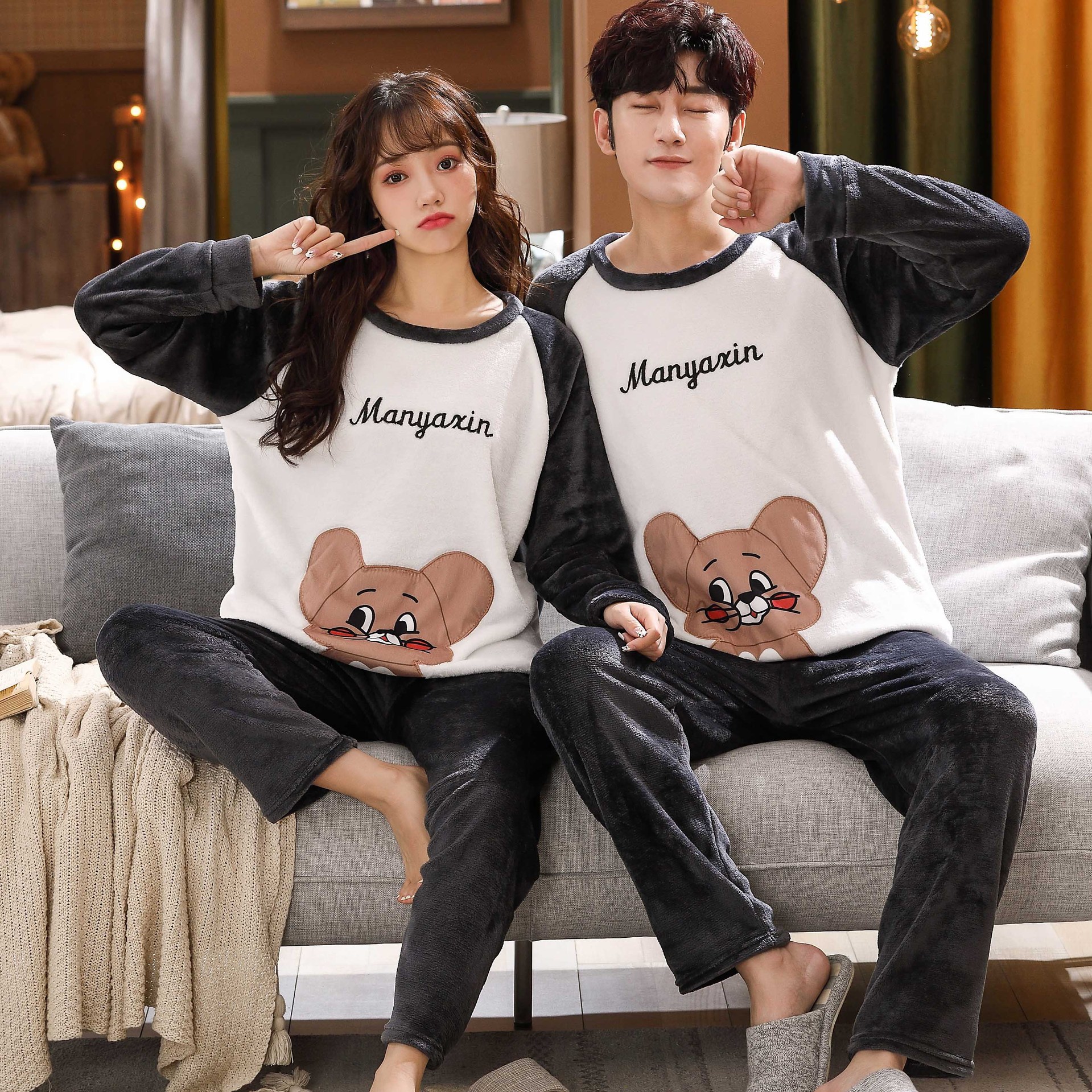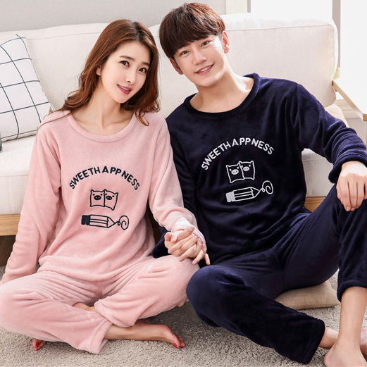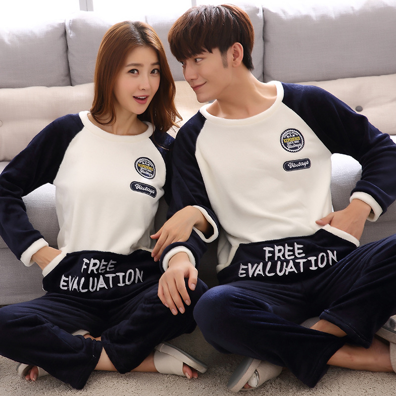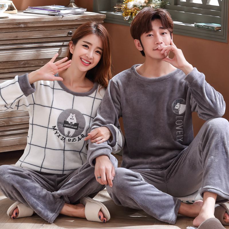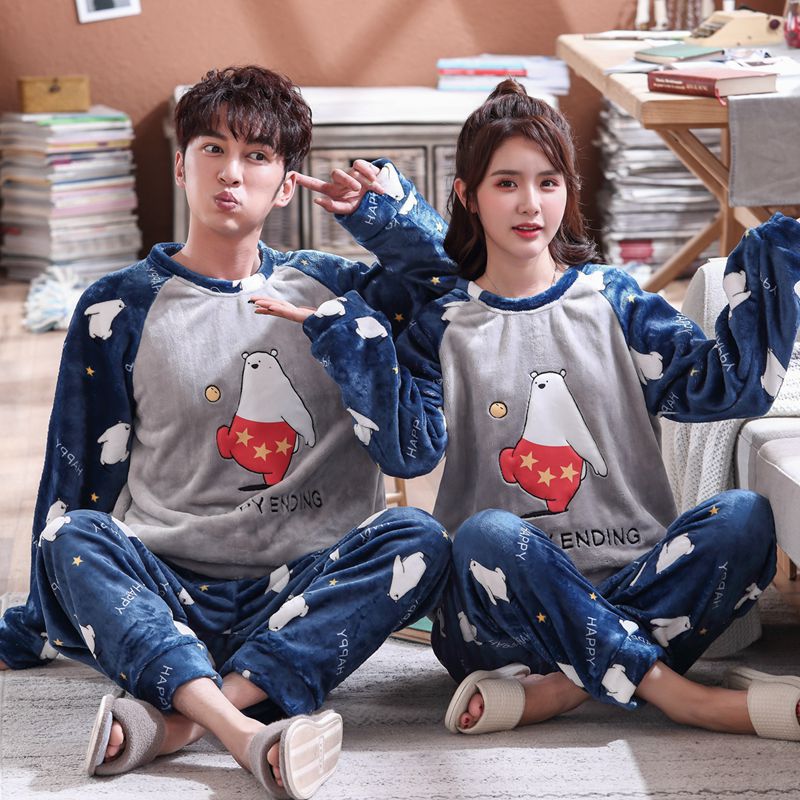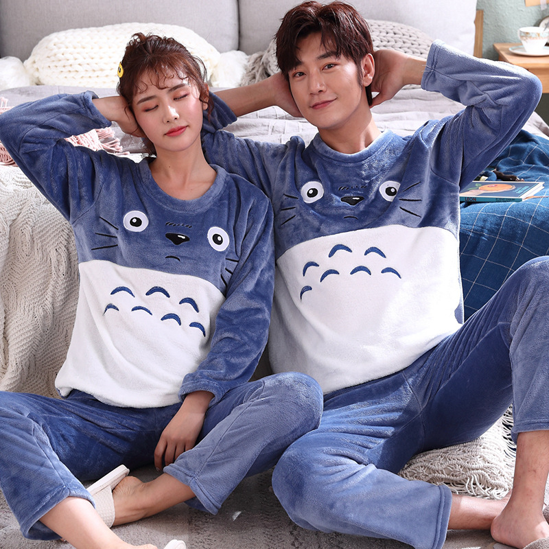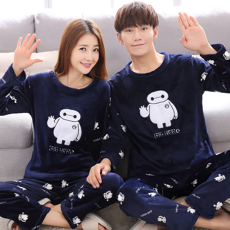 Главная страница > Парные пижамы из кораллового флиса в Корейском стиле, Мужская и Женская осенне-зимняя тонкая бархатная мультяшная Милая фланелевая Домашняя одежда, тонкая