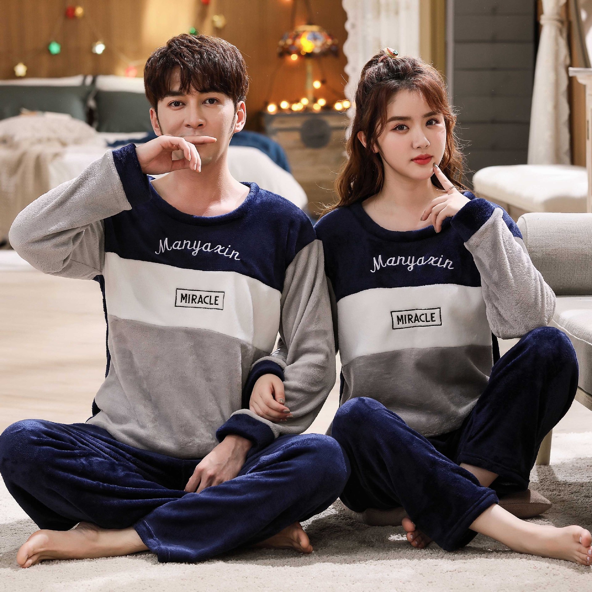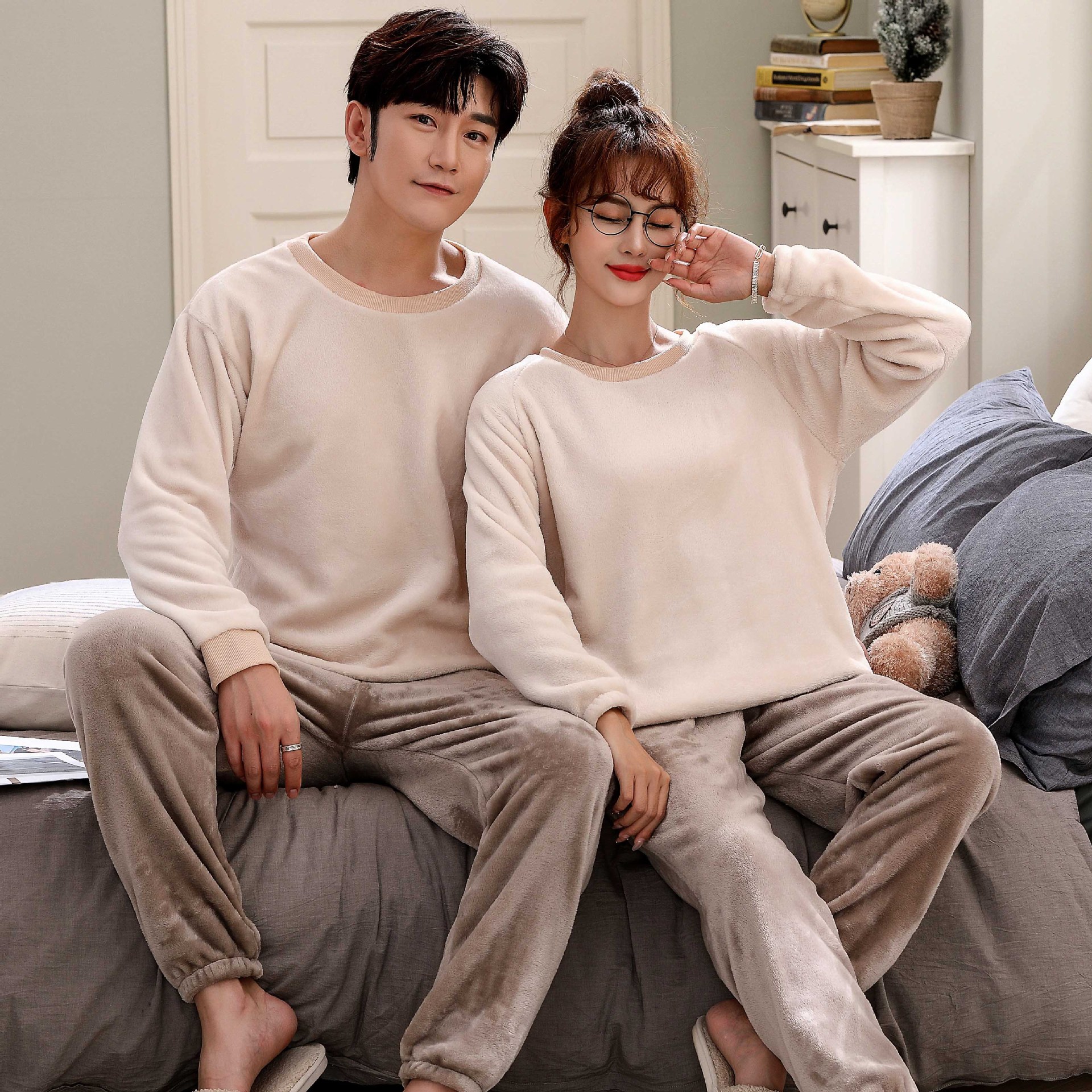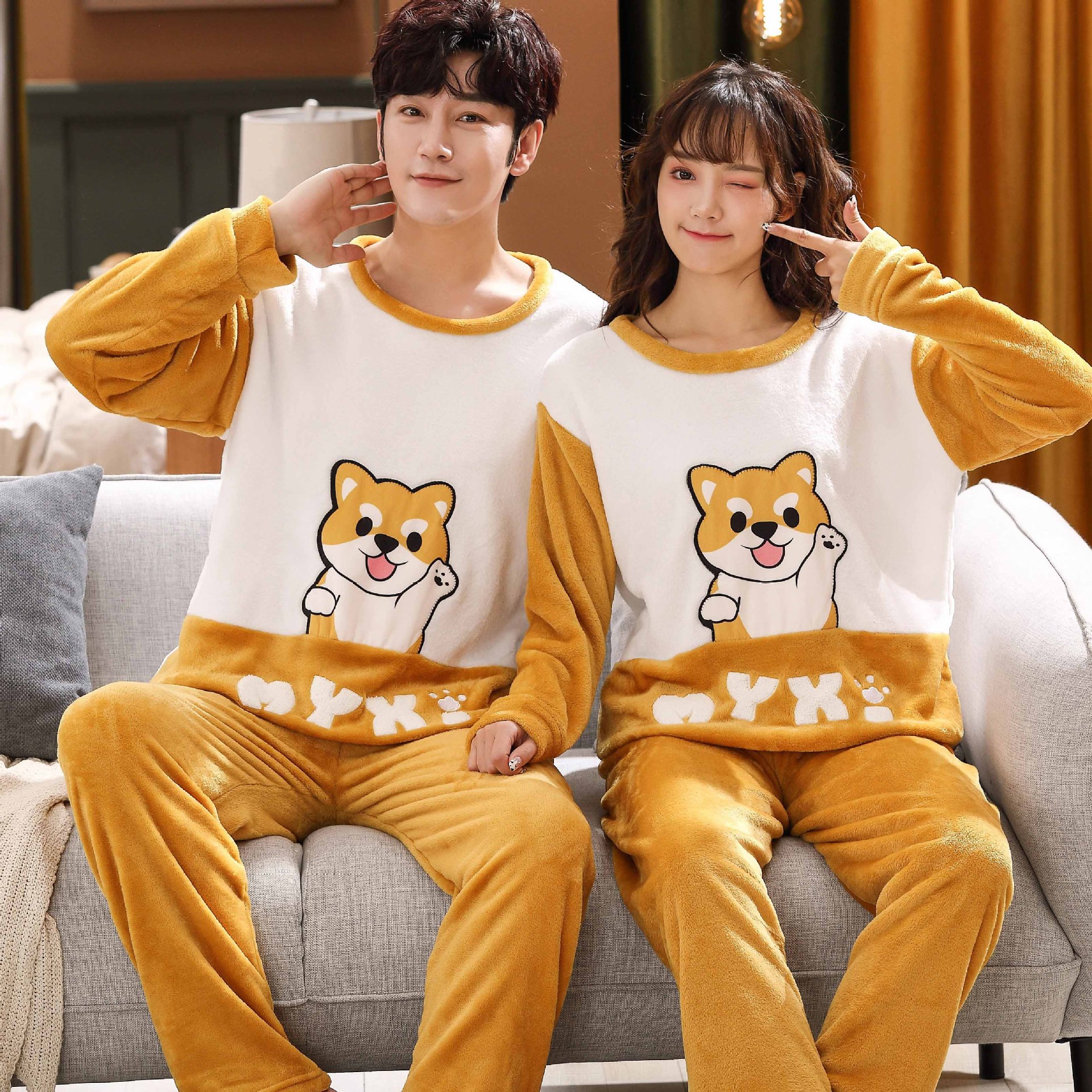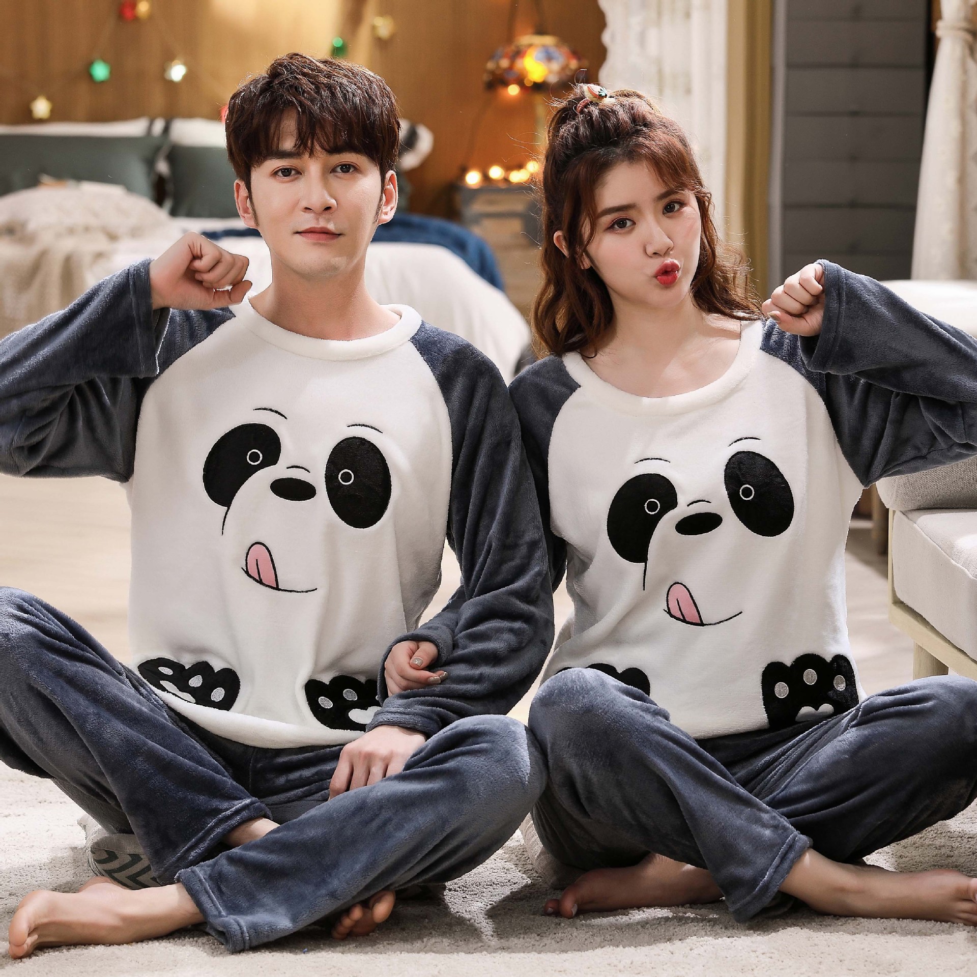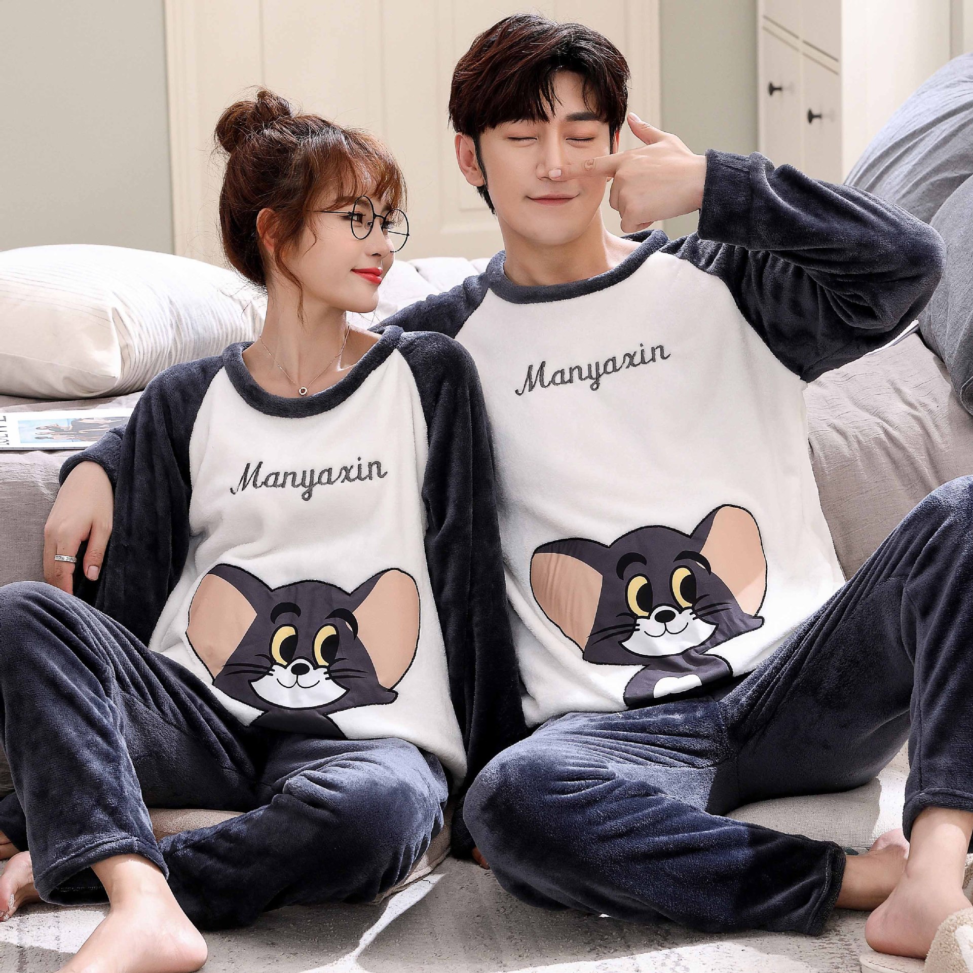 Главная страница > Парные пижамы из кораллового флиса в Корейском стиле, Мужская и Женская осенне-зимняя тонкая бархатная мультяшная Милая фланелевая Домашняя одежда, тонкая
