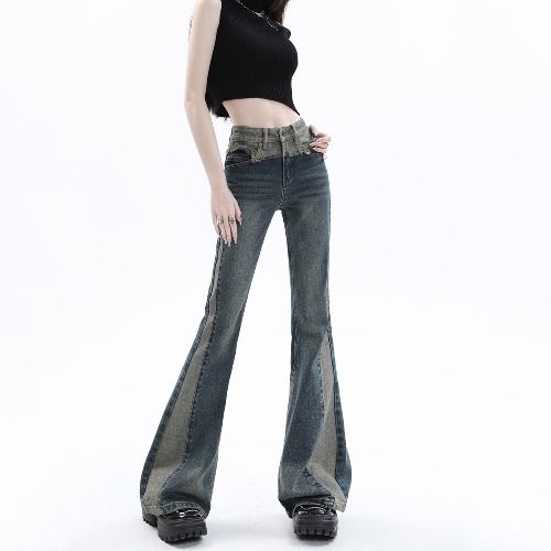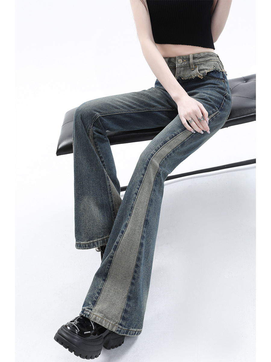 Главная страница > Американский стиль с высокой талией сшитые джинсы микро-Ла женский 2024 новый ретро-ремонт нишевые штаны