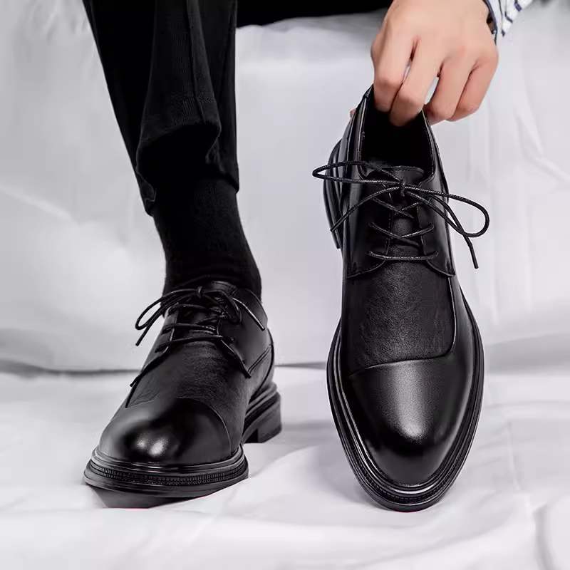 Главная страница > Мужские новые туфли для делового стиля, коричневые британские повседневные кожаные туфли на шнуровке, обувь для жениха на свадьбу.